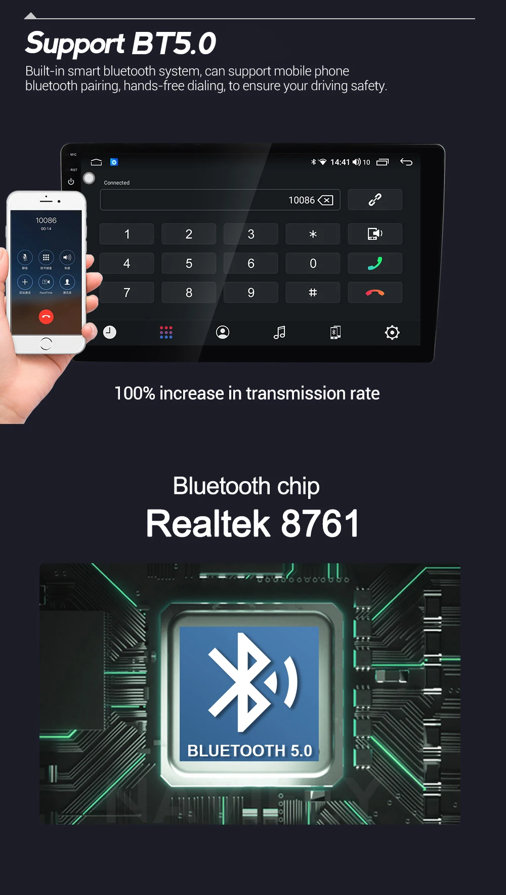 7862-лучший чип на рынке в настоящее время, работает быстрее всех типов. Оценка ANTUTU составляет 181063, что лучше, чем PX6, 9853 , PX5, MTK и все другие типы 4 + 64G на рынке. По сравнению с другими типами радио, 7862 радио может загружать больше видов приложений для Android с рынка Android, а приложение может работать лучше.