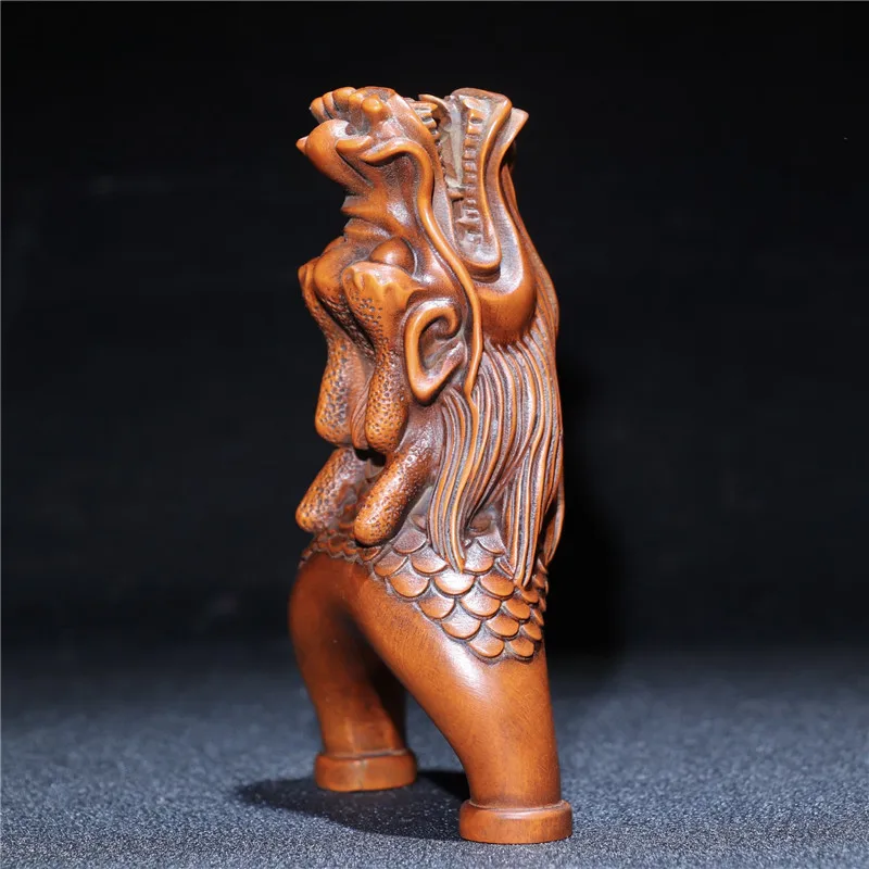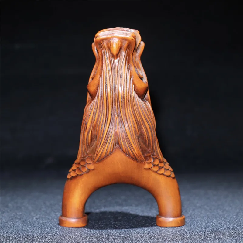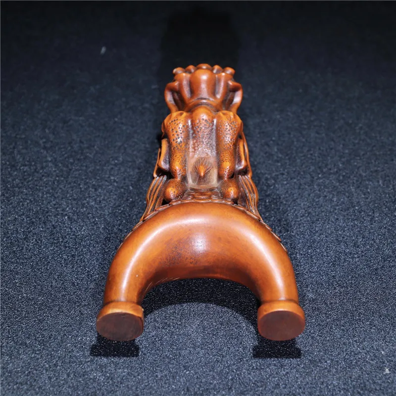 Китайский ручной резной Самшит Голова Дракона Рогатка