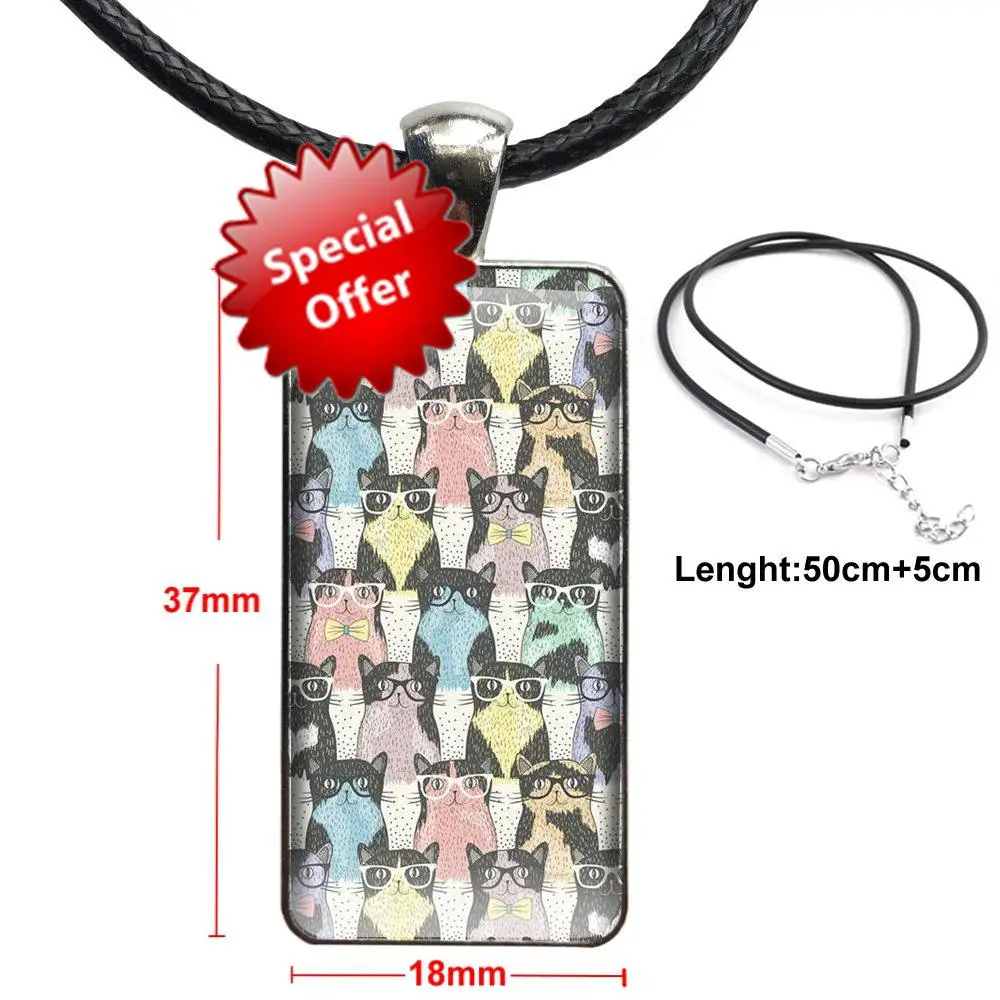 Сексуальное Животное более милое лиса кошка для унисекс модное стекло кабошон кулон прямоугольное ожерелье колье ожерелье ювелирные изделия