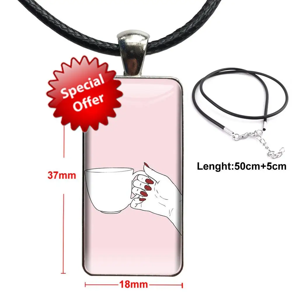 Кофейная чашка для вина, книга, Лучшая цена, винтажное ювелирное изделие, стальное покрытие, со стеклянным кабошоном, чокер, Длинная подвеска, прямоугольное ожерелье для женщин, свадебный подарок