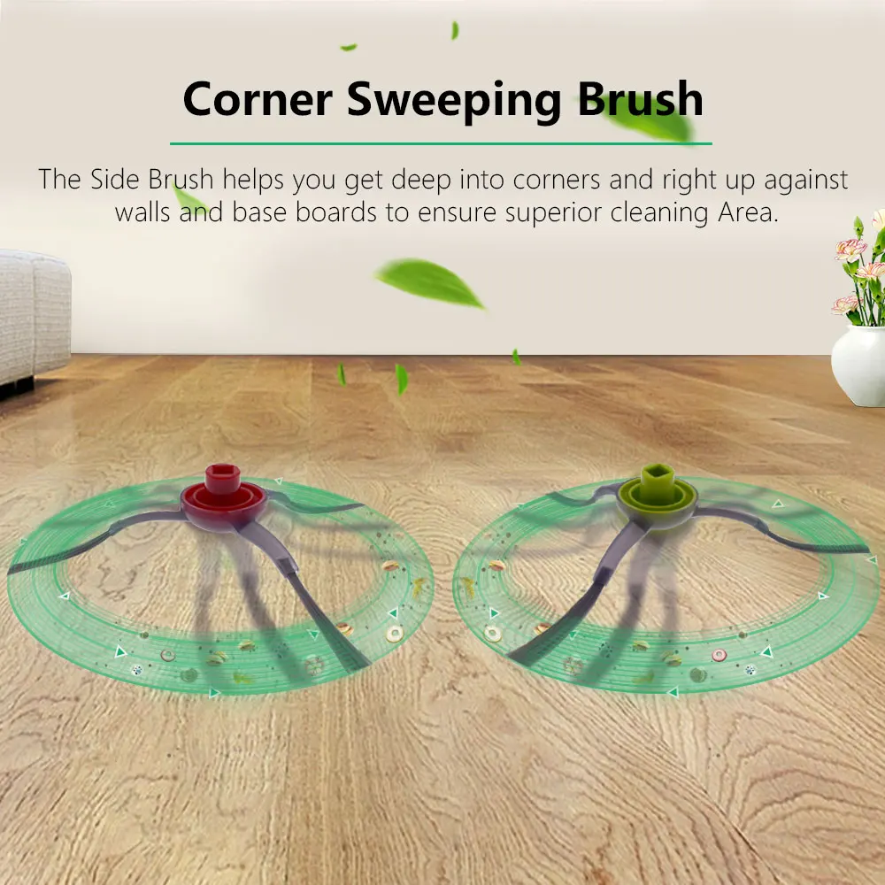1) боковая щетка помогает вам впасть глубоко в углы и прикрепить ее к стенам и базовым доскам, чтобы обеспечить превосходную площадь очистки.