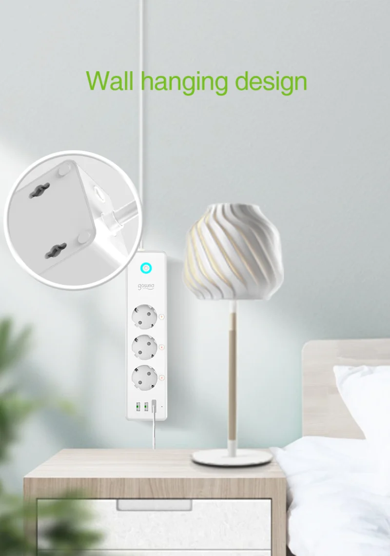 【APP remote control】 Gosund/Tuya / Smart life APP можно использовать для удаленного управления блоком питания вкл и ВЫКЛ. Вы можете видеть и контролировать открытое или закрытое состояние полосы питания из приложения, когда вы находитесь вдали.