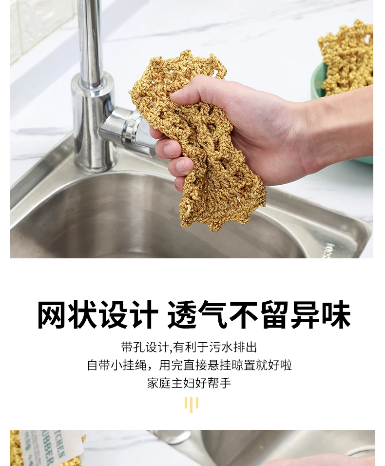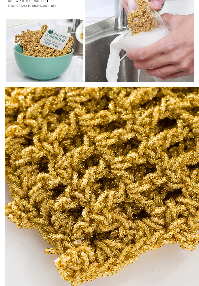 Этот товар изготовлен из высококачественного материала для прочного и практичного использования. Очищающая поверхность плотно прилегает и не царапается. Необходимые кухонные принадлежности для чистки инструментов для вас. Отлично подходит для общей кухонной утвари. Особенности -Цвет: золотистый. -Размер: 10x15 см. -Изготовлен из высококачественного материала, прочный и долговечный. -Может эффективно чистить кухонные блюда, легко и практично. -Ультра, легко для вас чистить блюда, тарелки, миски, не царапает поверхности. -Идеально подходит для кухонных прилавков, раковин, уборочных туалетов и полировки дома, гаража, автомобиля, офиса и многого другого. -Многоцелевой, отлично подходит как для чистки ткани, так и для мытья тряпки, чтобы сделать вашу домашнюю кухню чистой.