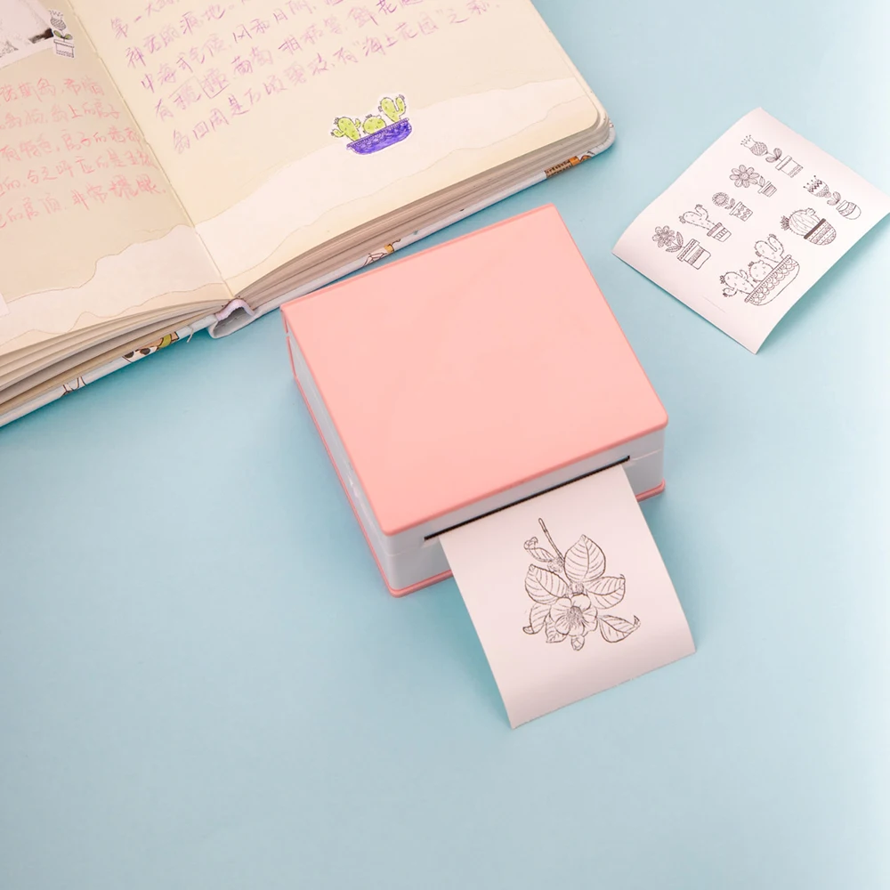 Pocket Printer: Compact and simple, like a small square book, easy for carrying. 203dpi high definition printing, 53mm paper width, good and clear printing effect.