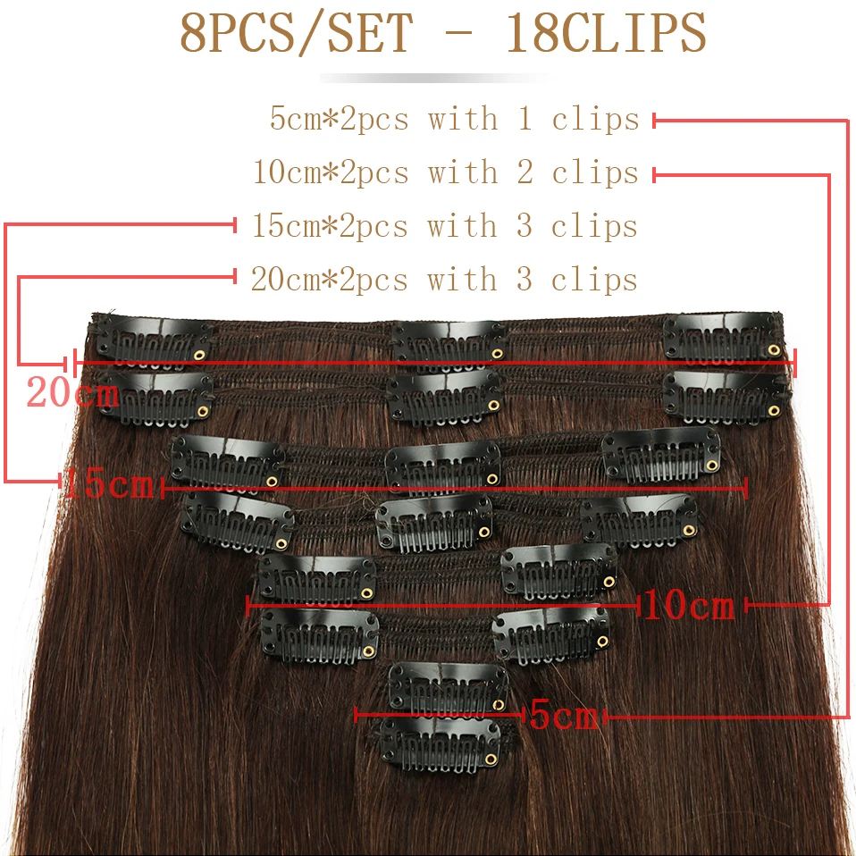 Стиль: прямые накладные человеческие волосы на клипсах