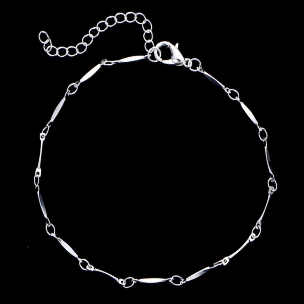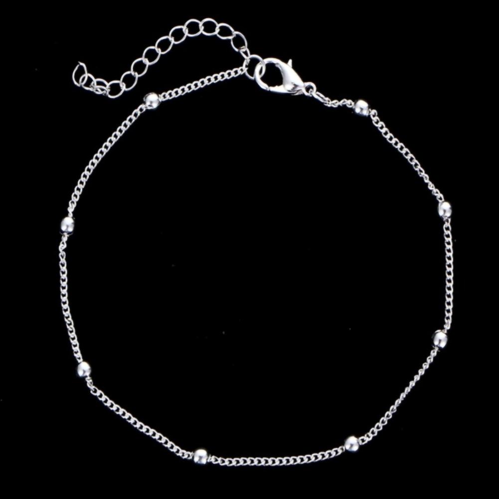 Женская цепочка на щиколотке украшена бусинами, простая, но модная.