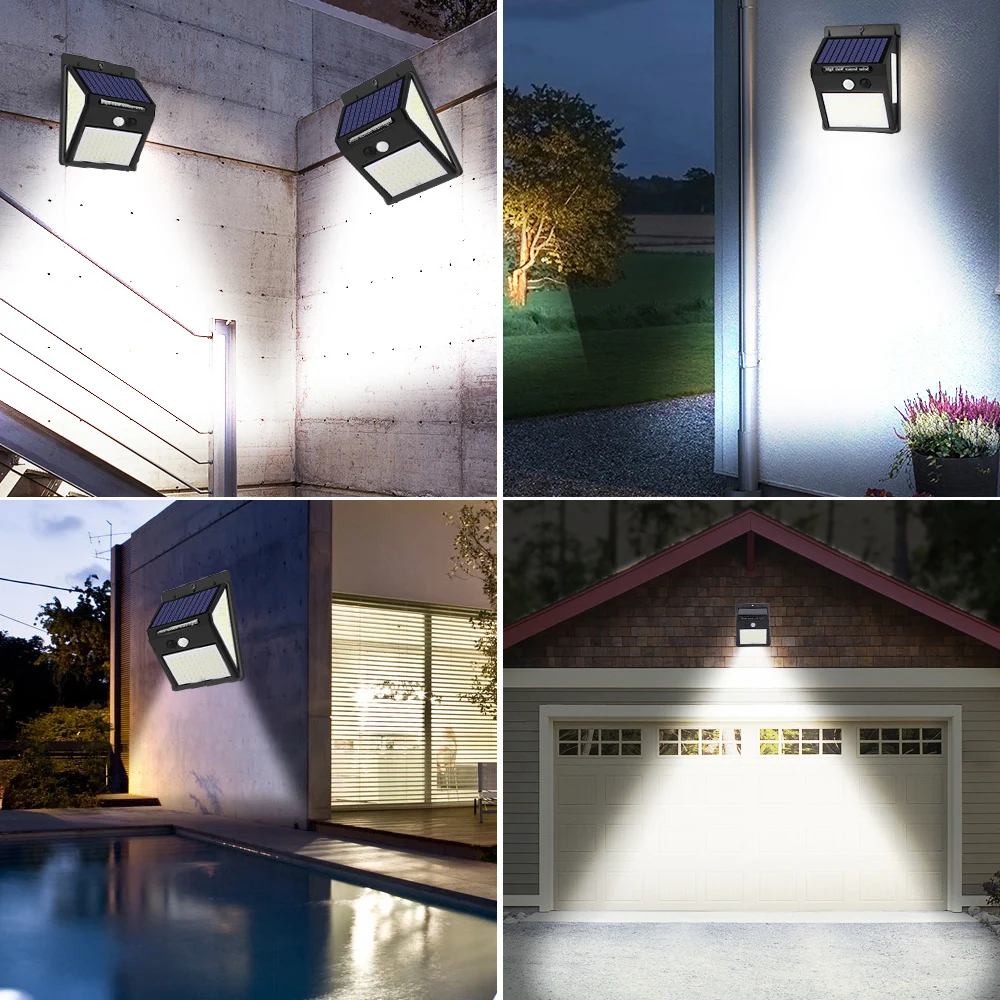 222 светодиодный солнечный наружный PIR 4 modos сенсор de movimiento luz de pared Lampara Solar impermeable luz Solar decoración del jardina Описание