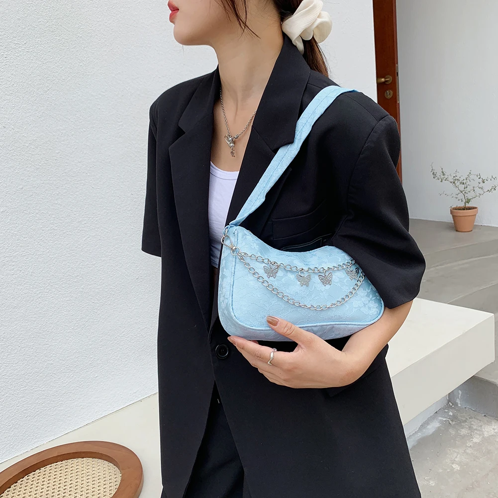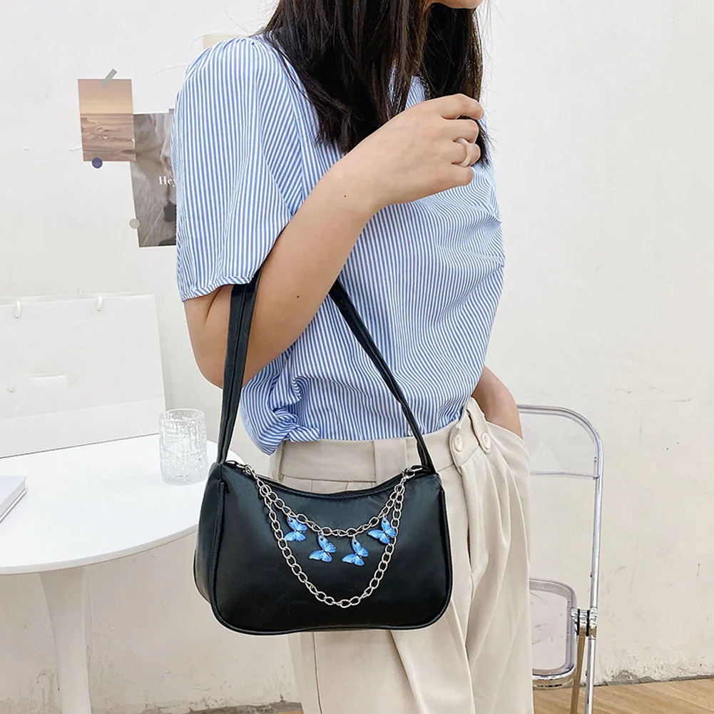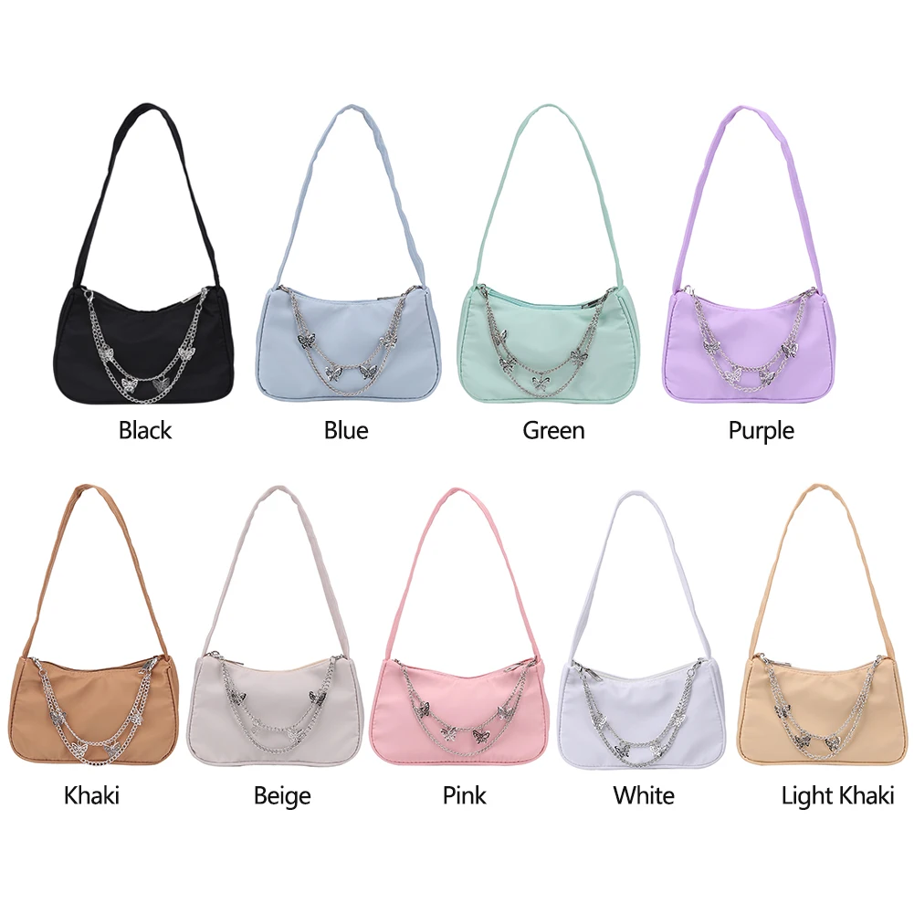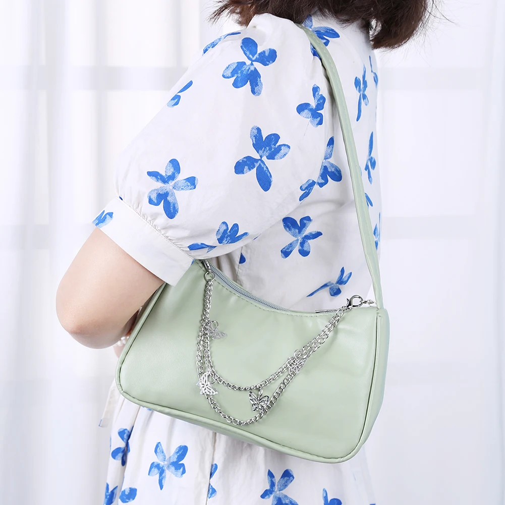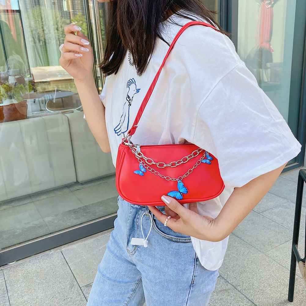 Модная женская однотонная сумка через плечо с цепочкой-бабочкой, повседневная женская маленькая сумочка-Хобо, кошелек