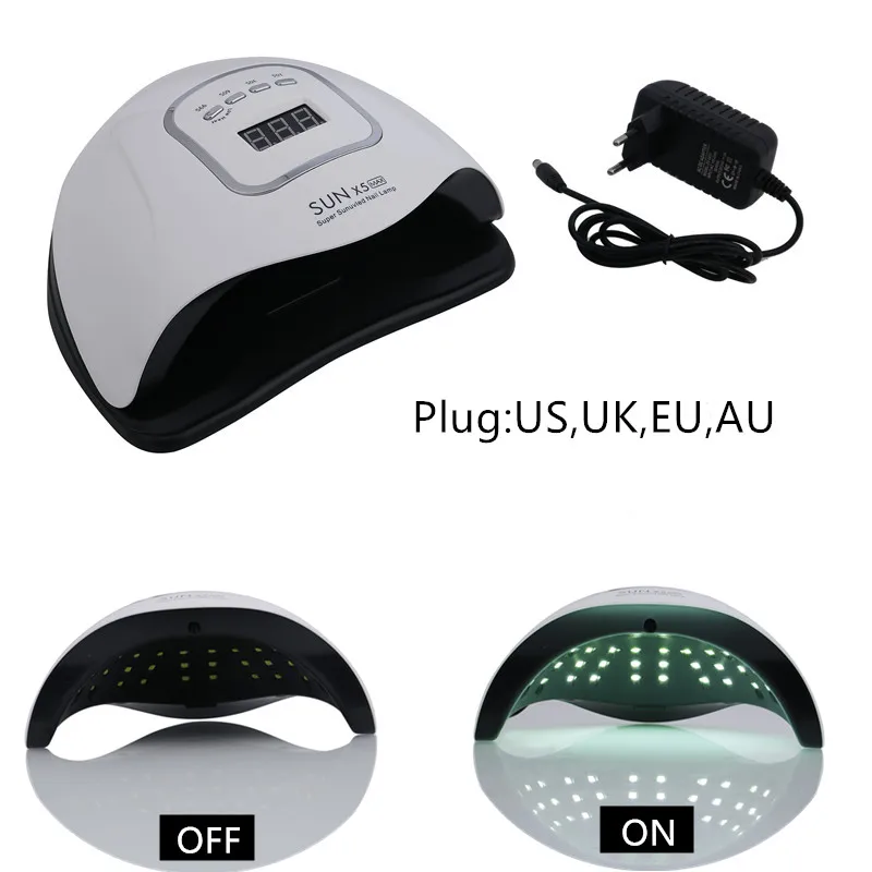 SUN X5 MaxМатериал: АБСПодходящий тип геля: УФ-гель/светодиодный гель/строительный гельАдаптер: Номинальный Вход 100-240 В, ГцВилка: ЕС, Австралия, США, Великобритания (по умолчанию-ЕС, если вам нужна Австралия/США/Великобритания, пожалуйста, свяжитесь со мной перед размещением заказа)Светильник: 45 УФ светодиодный ных бусинВремя: 10/30/60/99 с в режиме без болиУпаковочный лист:Лампа * 1 шт.Блок питания * 1 шт.Примечание: воздушная подушка хорошо упакована