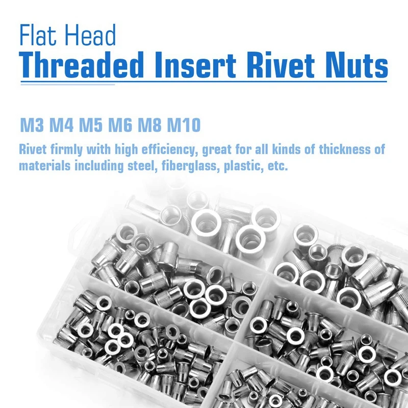 [Высококачественный материал] изготовлен из нержавеющей стали 304(18-8), которая является одной из самых высоких форм коррозионно-стойких металлов. Заклепки гайки имеют высокую твердость, не деформируемость и сильное сопротивление ржавчине. Более того, эти гайки с заклепками безопасны, нетоксичны и безопасны для окружающей среды.