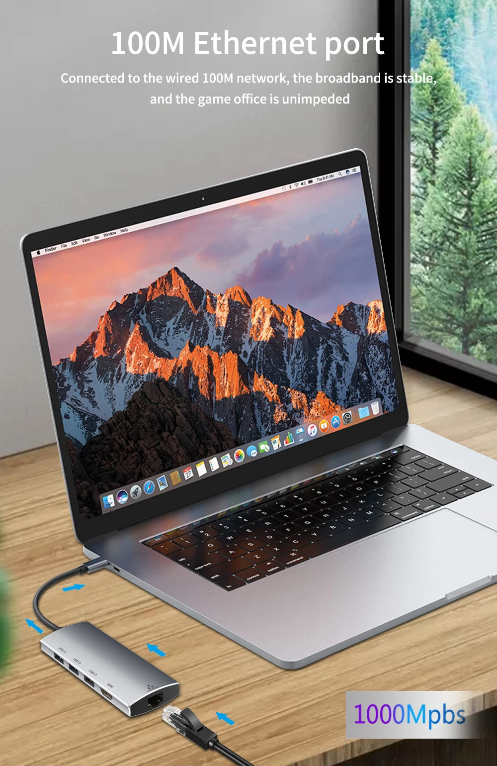 TSR113(5 в 1): Тип C на HDMI-Совместимость/RJ45 100M/2-порт USB2.0/PD