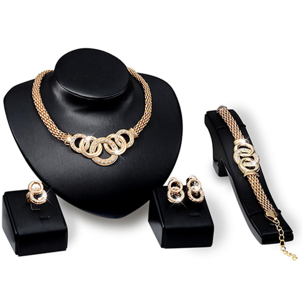 Особенности: Массивное колье-чокер, эффектное кольцо, серьги-гвоздики, Комплект украшений из 4 предметов