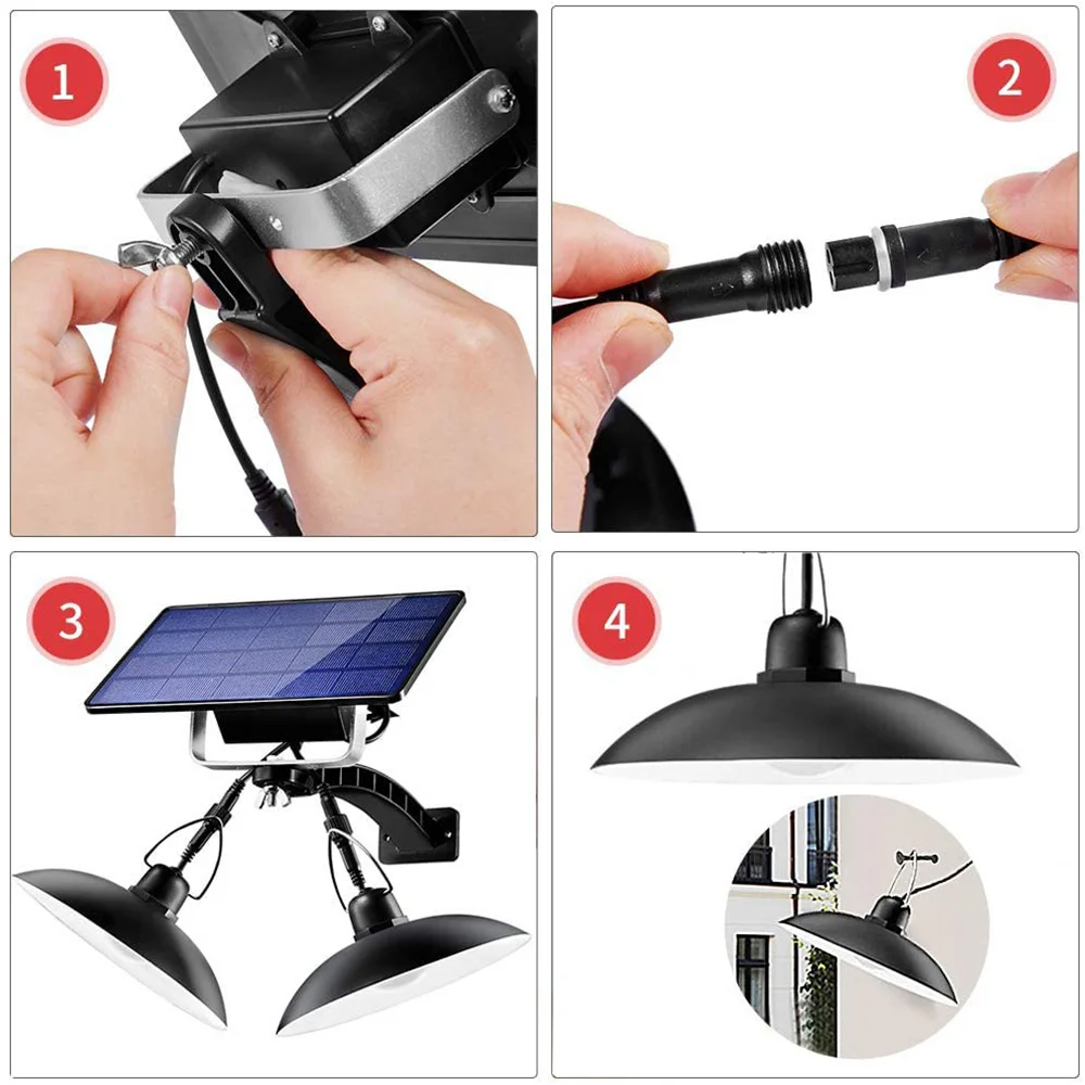 ▪【Package】 двойной подвесной светильник на солнечной батарее, Легко управляемый. Солнечный светильник, Прочная вешалка с винтами. Аксессуары в посылка. Легко устанавливается.