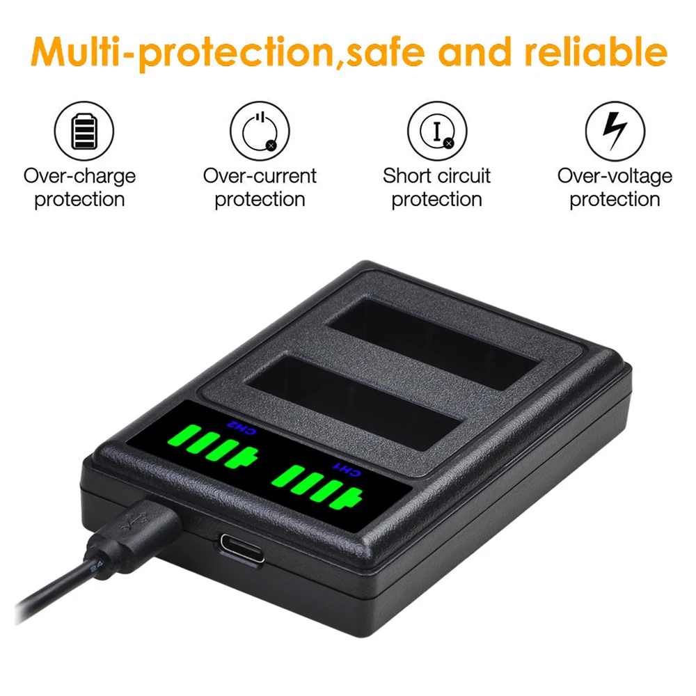 2000 мАч PS-BLS5 аккумулятор камеры + светодиодный двойной зарядное устройство с портом Type-C