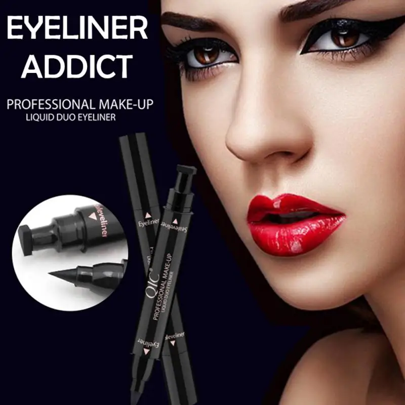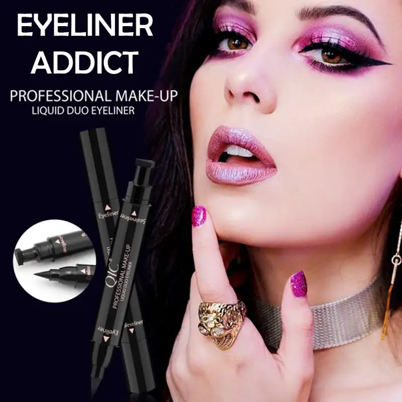 QIC Vloeibare ручка для макияжа waterdichte zwarte dubbele hoofd макияж zegel подводка для глаз