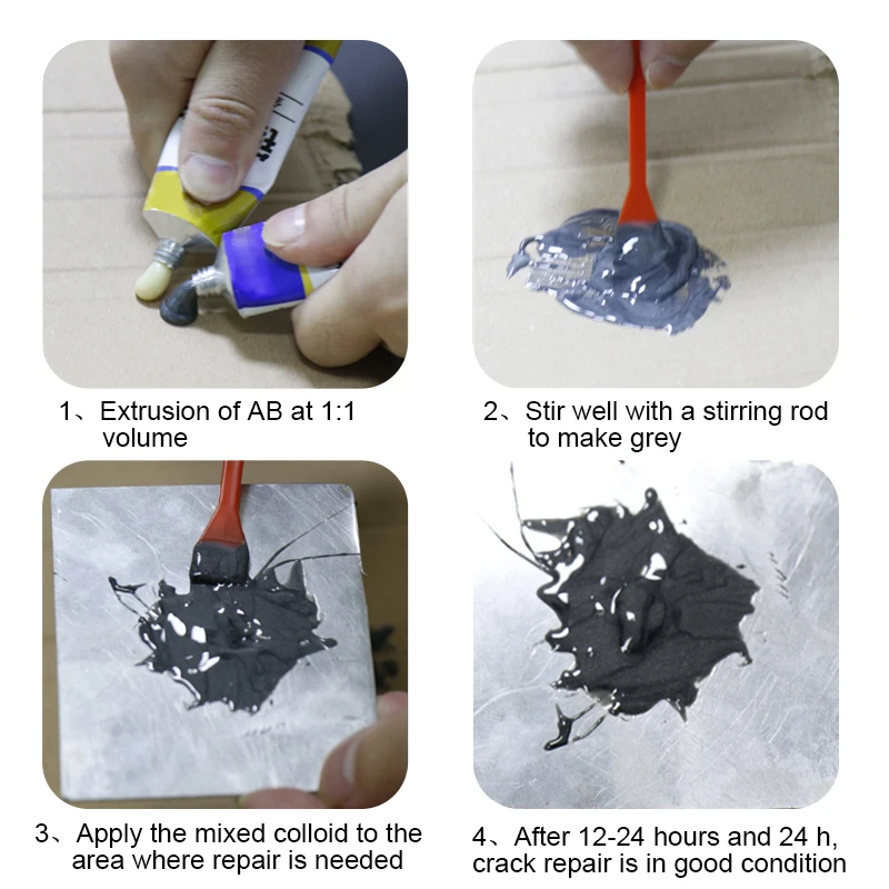 Основное применение: используется для ремонта литых металлов. Он изготовлен из эпоксидной смолы, отвердителя, закалки, реактивного разбавителя и различных высококачественных материалов. Используется для быстрого склеивания металла, стекла, керамики, пластика, дерева и т. д. Используется при пузырьках, порах или трещинах, заполненных железом и стальными отливками, дефектах отливки, высокой отверждаемости