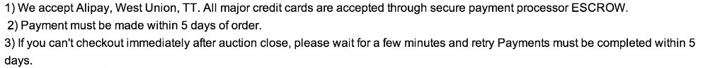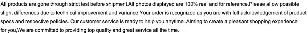 (4) Быстрая доставка: Доставка товара в течение 1-2 рабочих дней (6) коммерческий счет: Если вам нужен коммерческий счет, пожалуйста, оставьте нам сообщение по электронной почте после размещения заказа (5) качество и послепродажное обслуживание: 100% экс-заводской тест 100% гарантия возврата денег: мы хотим, чтобы вы были абсолютно довольны нашими товарами. Если вы не удовлетворены, верните их нам для быстрого, беспроблемного возврата или замены продукта.