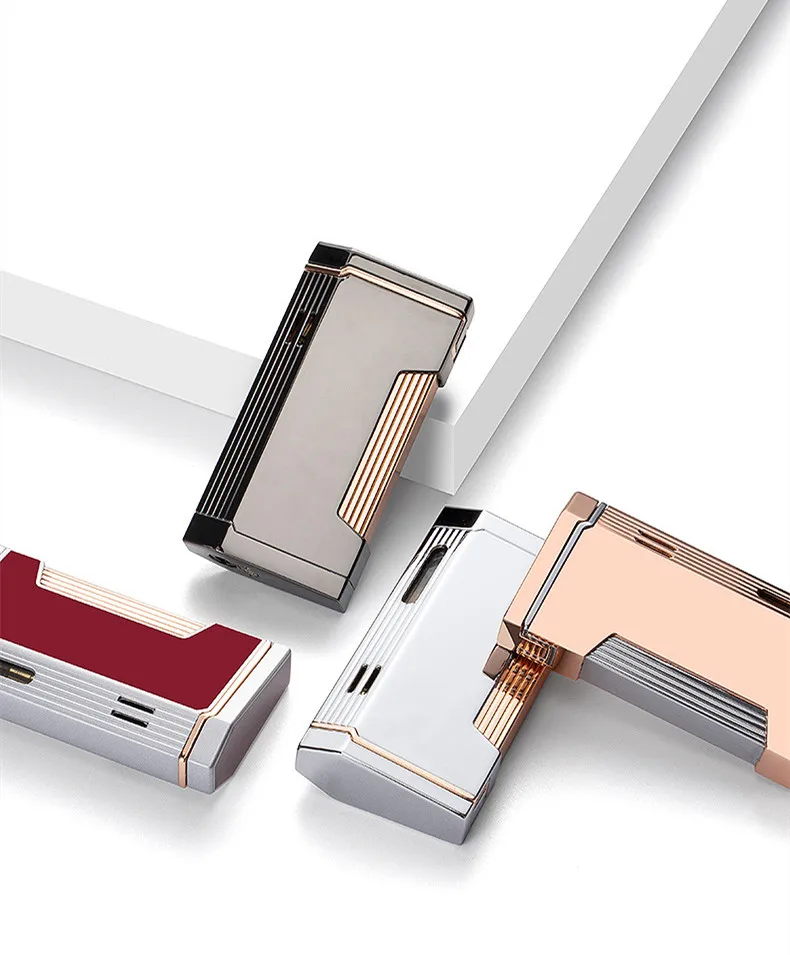 Высокое давление прямой впрыск Двойное пламя газовая зажигалка турбо видимое газовое окно ветрозащитные электронные зажигалки гаджеты для мужчин