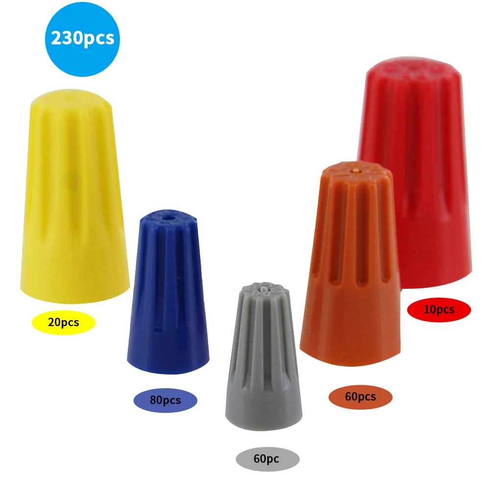 230 шт., практичный электрический провод, соединительный винт, соединительный колпачок с пружинной вставкой, ассортимент комплекта, гайка, пружинный колпачок, клемма