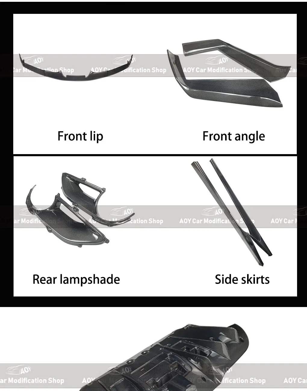 Передняя губа, передние закрылки, боковые юбки, задние вентиляционные отверстия, задние губы, спойлер