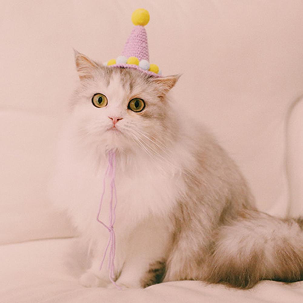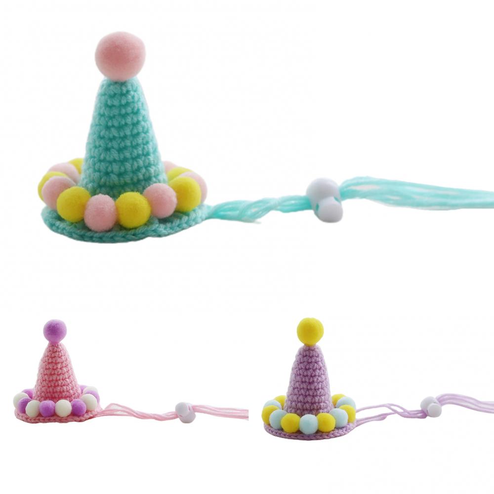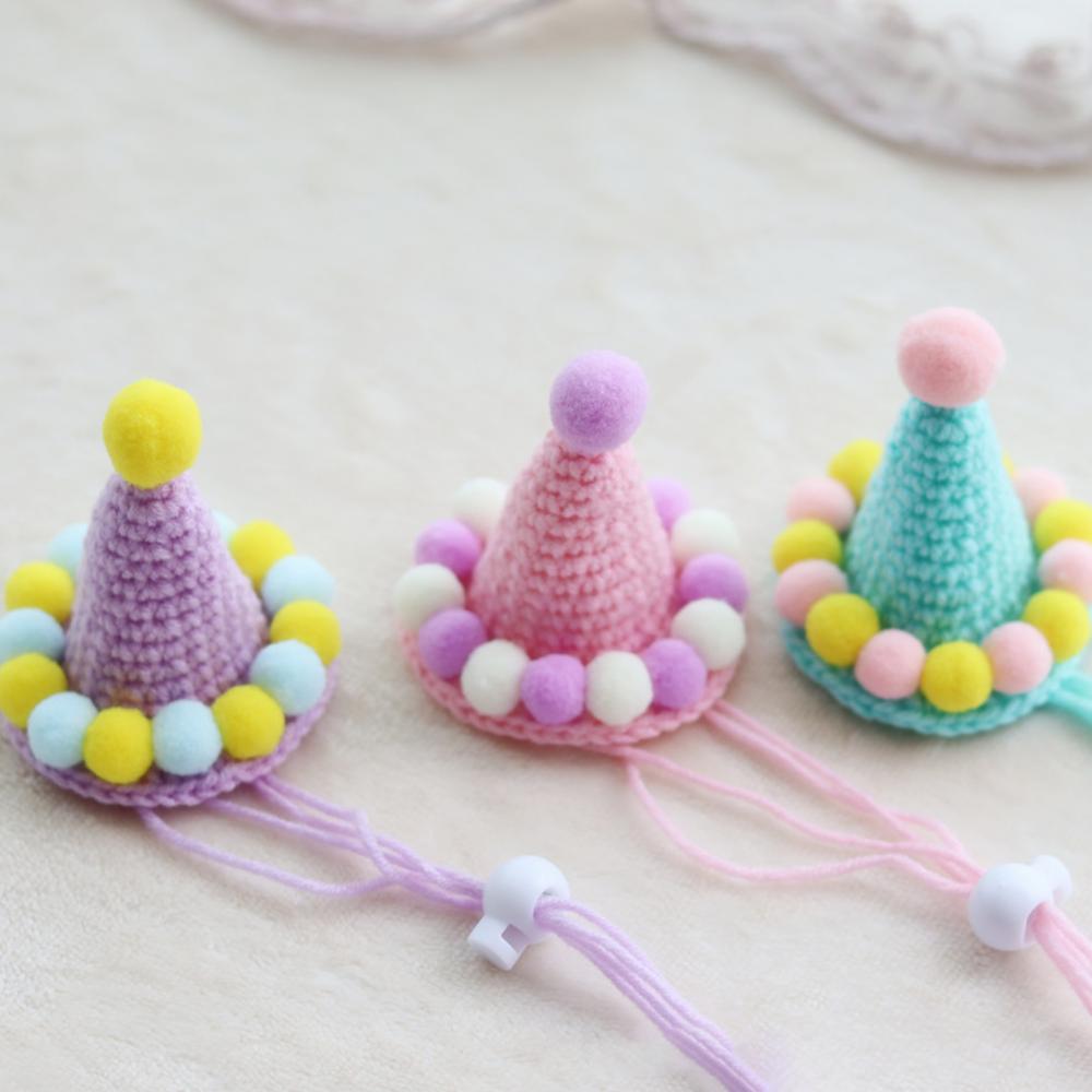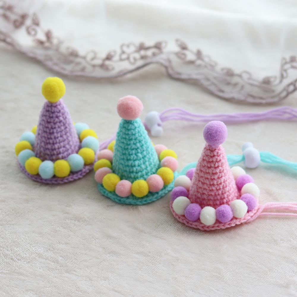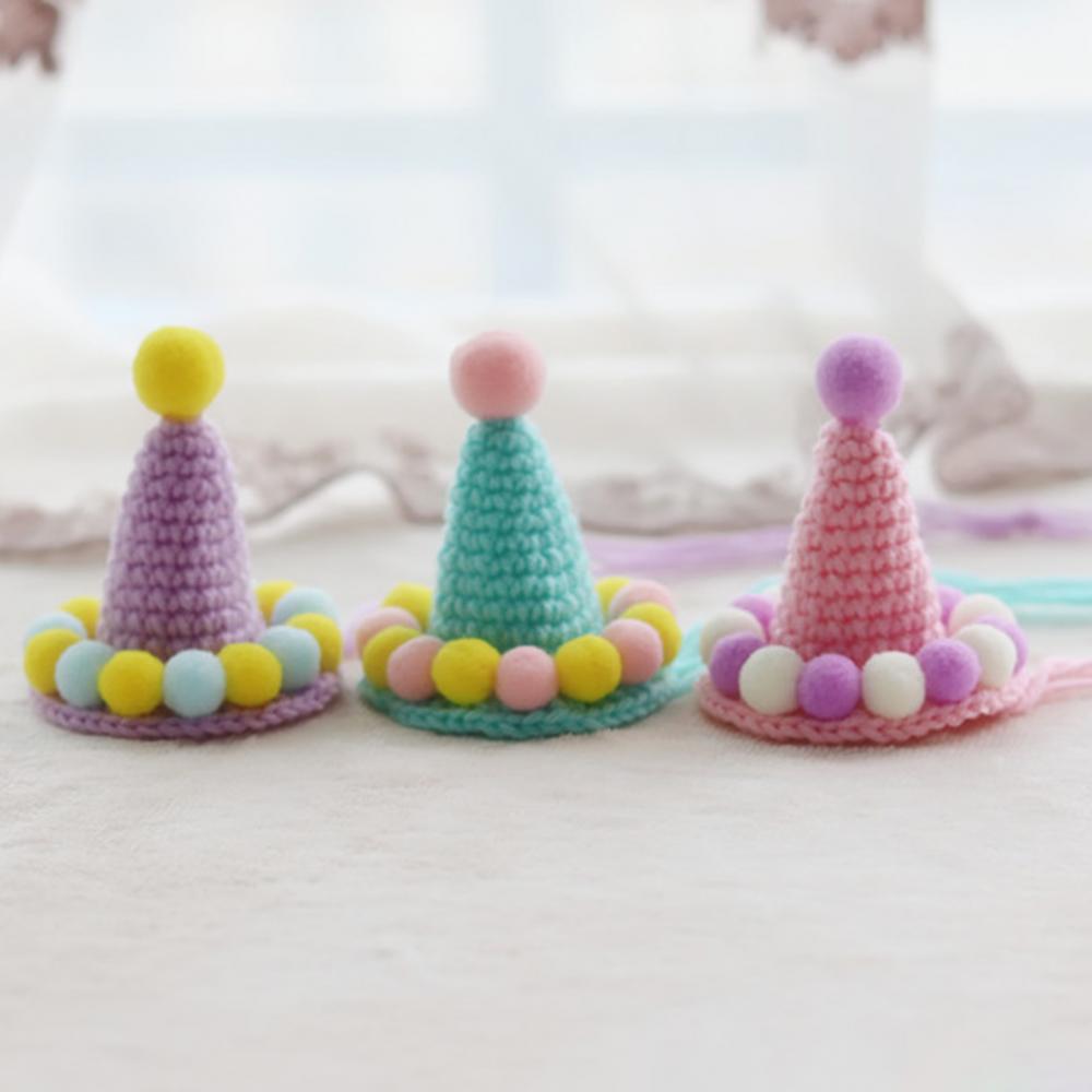 Ручная тканая шляпа для животных, день рождения, плюшевая Кепка с шариками, реквизит для фотосъемки, украшение для головы кошки, собаки, зеленая милая маленькая шляпа, украшение, подарок на день рождения