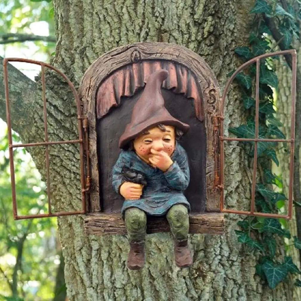 Эльф из двери дерево Hugger озорной сад Gnome Peeker Смешные украшения сада дерево скульптура крыльцо орнамент художественные фигурки