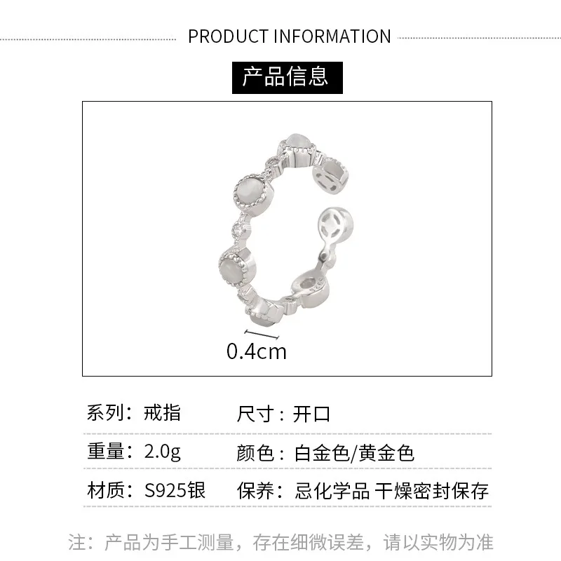 2021 горячая распродажа Новое поступление 925 стерлингового серебра Серебряная круглой формы кошачий глаз Регулируемые кольца для женщин помолвка свадебный подарок