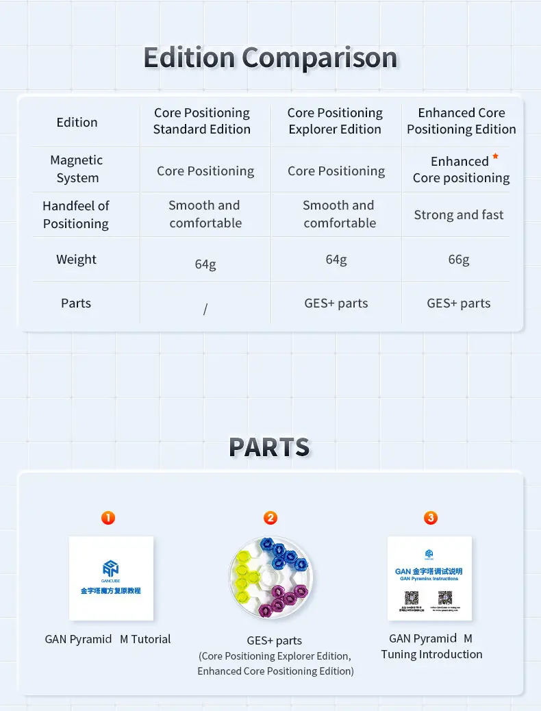 Бренд: GAN Модель: куб-пирамида GAN Тип: стандартное позиционирование ядра/улучшенное позиционирование ядра Цвет: без наклеек Материал: пластик Размер куба: 95x95x95 мм Вес продукта: около 66 г