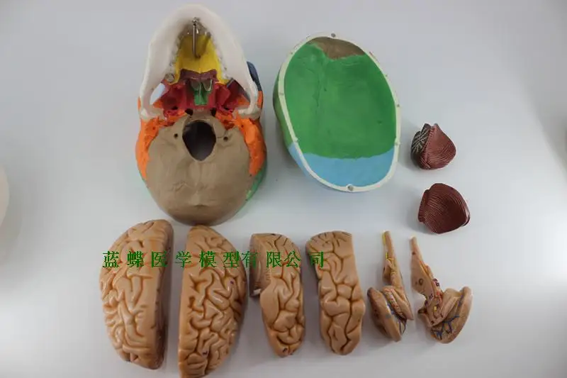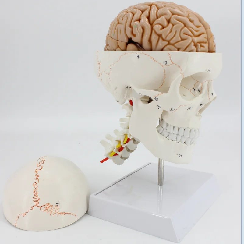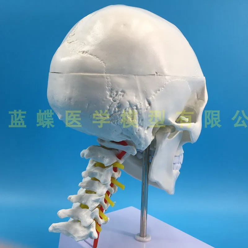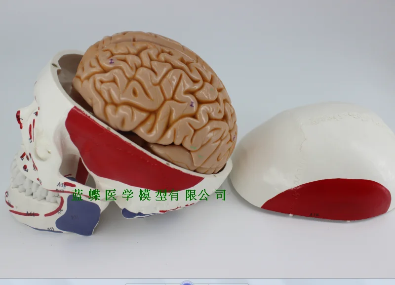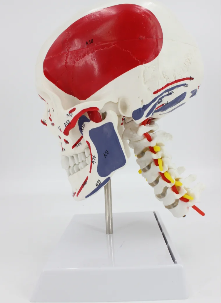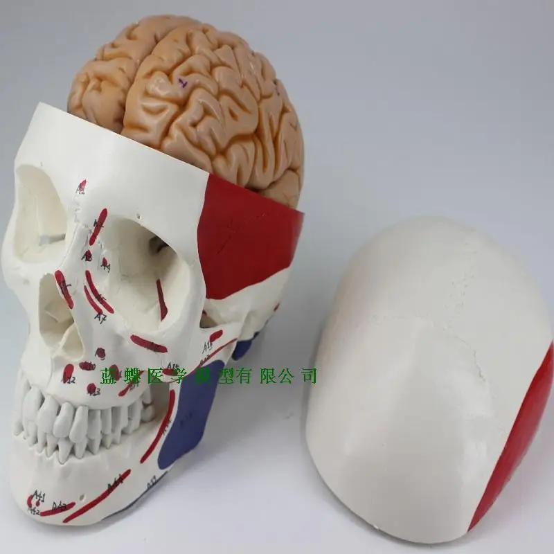 Особенности: Эта модель состоит из черепа и 7 шейных позвонков с шейным позвонком, подвижным подбородком, открывающейся черепной костью, линия шова и съемный полный зуб с кодировкой цвета мышц и основанием.