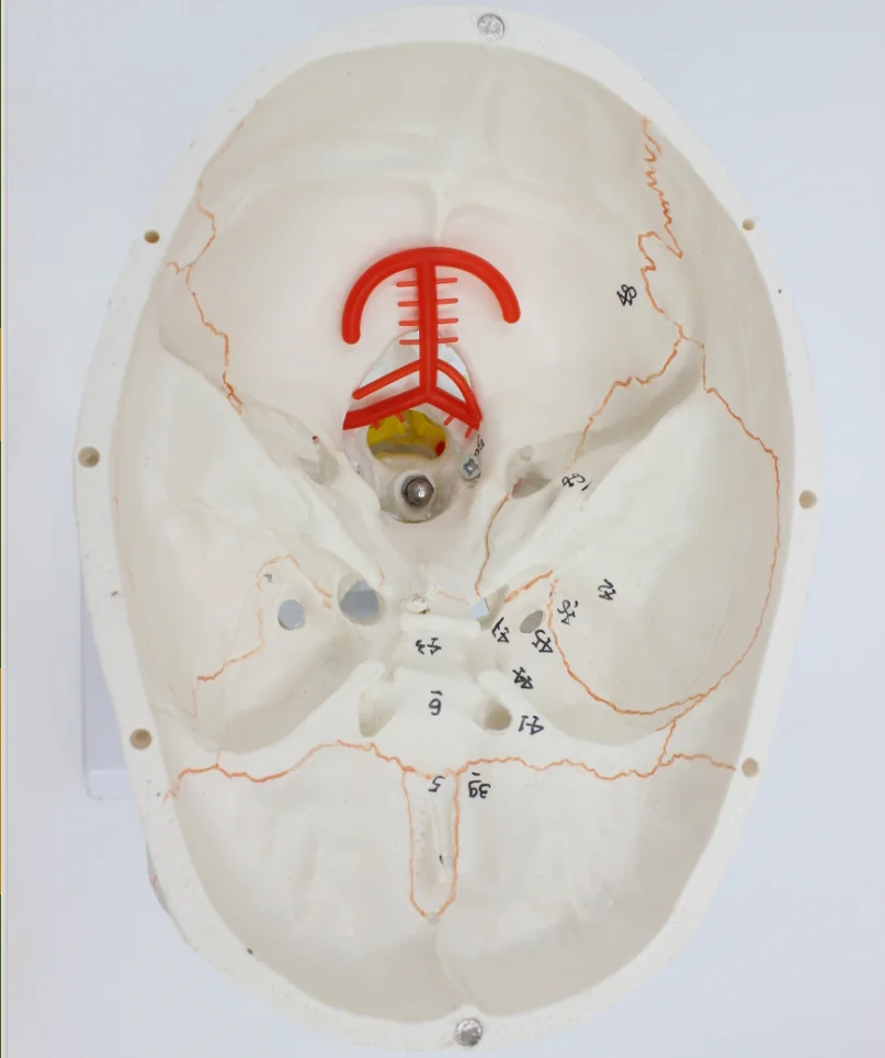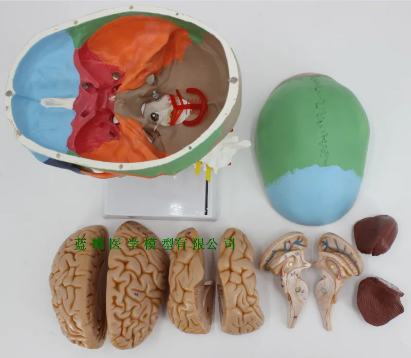 Номер черепа уникально спроектирован, и все важные анатомические структуры отображаются в цифровом коде. Высококачественный прототип изготовлен вручную из твердого и небьющегося экологически чистого ПВХ, который очень точно отображает сульки мозжечка, отверстия, выступающие и швы. Можно разделить на колпачки черепа, основание черепа и нижнюю челюсть, а также пружины нижней челюсти, съемные. Размер: естественно Большой, 19*15*21 см. Вес: 1 кг.