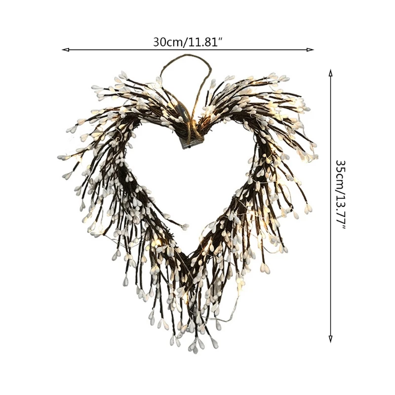 【Для помещений и улицы 】 венки с сердцем, освещенные для украшения передней двери, для украшения на День Святого Валентина в помещении и на открытом воздухе, дома, вечерние, настенные, камины, гостиная, спальня, столовая, мантель, веранда, окно, стол, офис и т. Д.