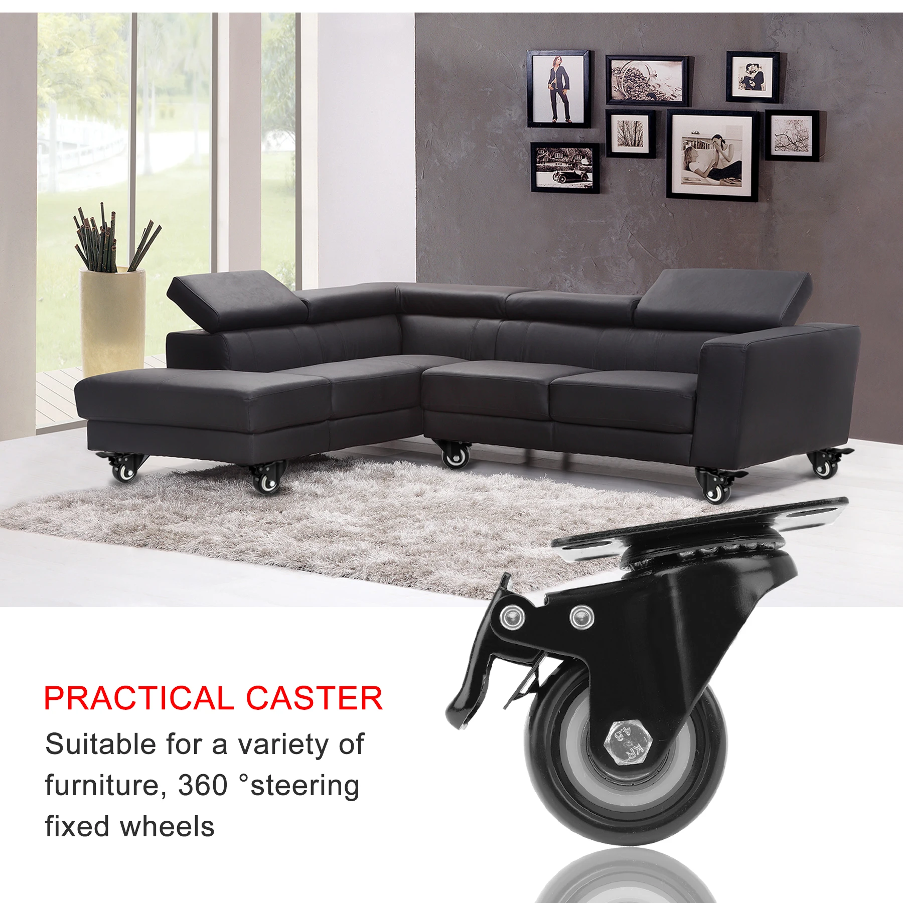 Защита пола: мебельные ролики снабжены прочным и мягким полиуретановым резиновым покрытием, которое позволяет легко скользить по любому полу. Прорезиненные ролики также очень тихие и защищают ваши полы от царапин или следов