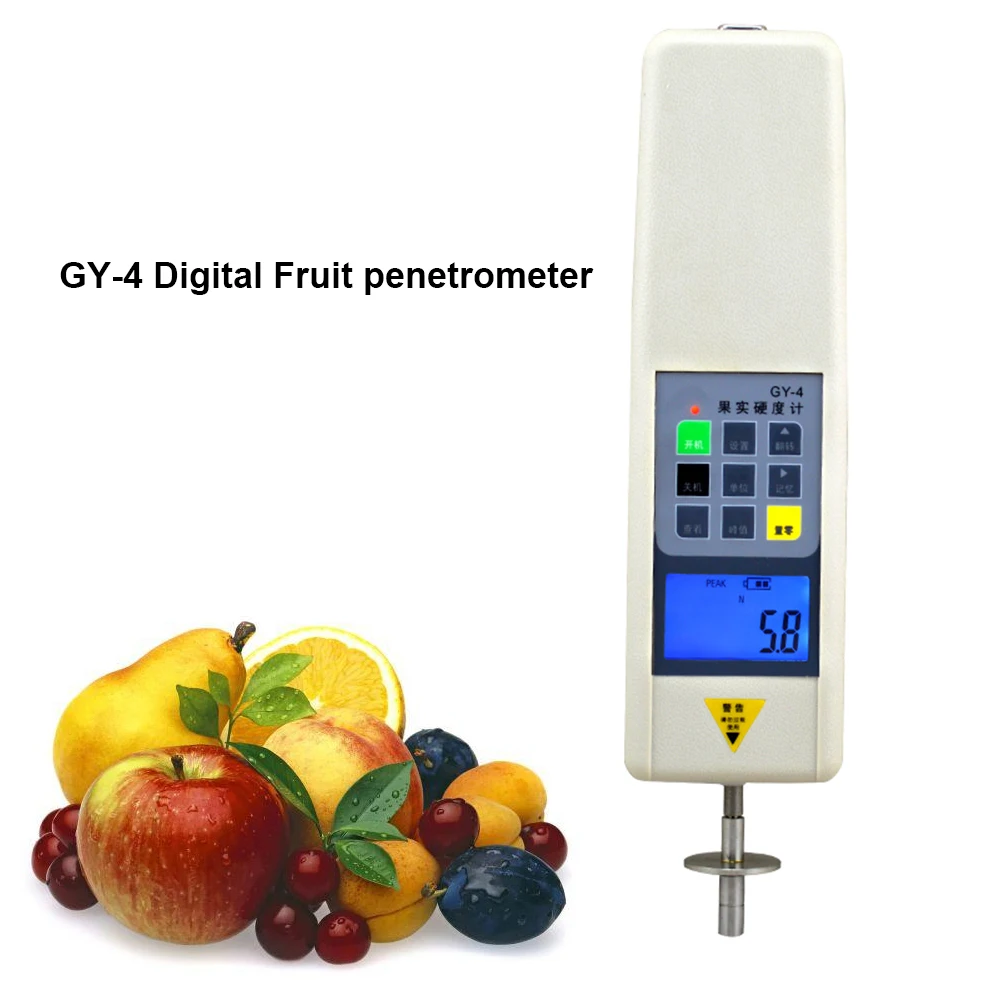 Тестер твердости фруктов с цифровым дисплеем GY-4! Продукция последнего поколения, оснащенная тремя датчиками (3,5 мм, 8 мм, 11 мм), новым устройством определения силы, используемым для измерения твердости яблок, груш, клубники, виноград и другие фрукты. Подходит для научно-исследовательских отделений фруктовых деревьев, фруктовых компаний, ферм фруктовых деревьев, колледжей и университетов и т. д. для проверки твердости фруктов, таких как разведение, сбор урожая, хранение, экспортная транспортировка и обработка, чтобы оценить зрелость фруктов. Инструмент имеет небольшие размеры светильник вес, интуитивно понятный для чтения и удобен в переноске, особенно подходит для тестирования на месте. Его также можно собрать на поддерживающей специальной испытательной машине для повышения точности тестирования.