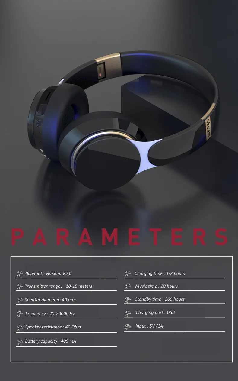 Карта TF / Micro SD с загруженной MP3 музыкой и прослушиванием песни непосредственно на гарнитуре. Разработан с чипсетом Bluetooth 5,0 для более низкого энергопотребления и более высокой совместимости. Встроенный микрофон: поддерживает звонки без рук и голоса. Благодаря последним усовершенствованиям ваш голос становится более четким в шумной среде. 40 мм динамик с диафрагмой драйвера, высокое качество звука стерео, наслаждайтесь беспроводной музыкой высокого качества. Мягкие кожаные амбушюры и выдвижная повязка уменьшают нагрузку на уши. Не чувствую себя некомфортно, когда Носите в течение длительного времени. Эргономичный дизайн, имитирующий мягкие наушники на основе текстуры кожи человека для обеспечения прочного комфорта.