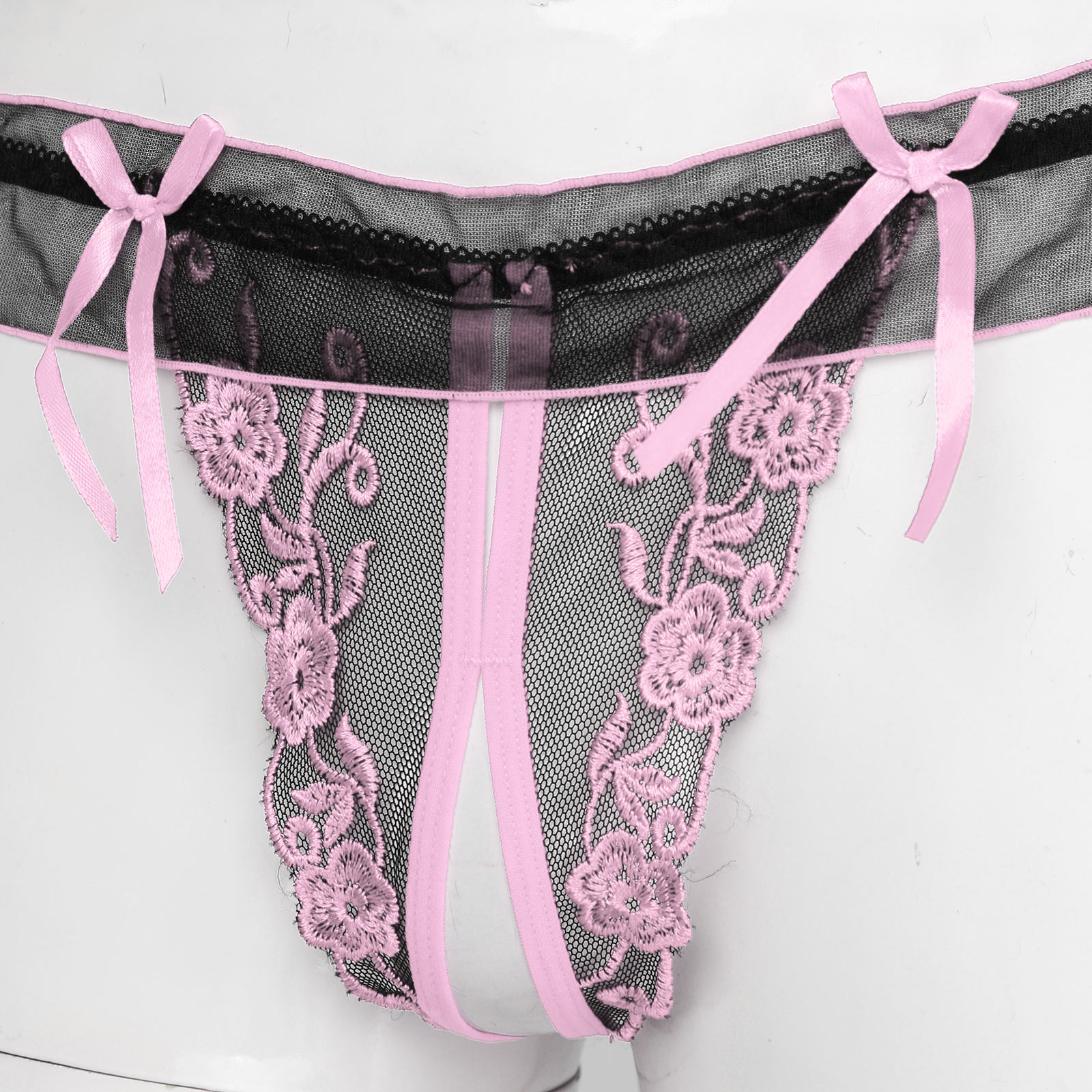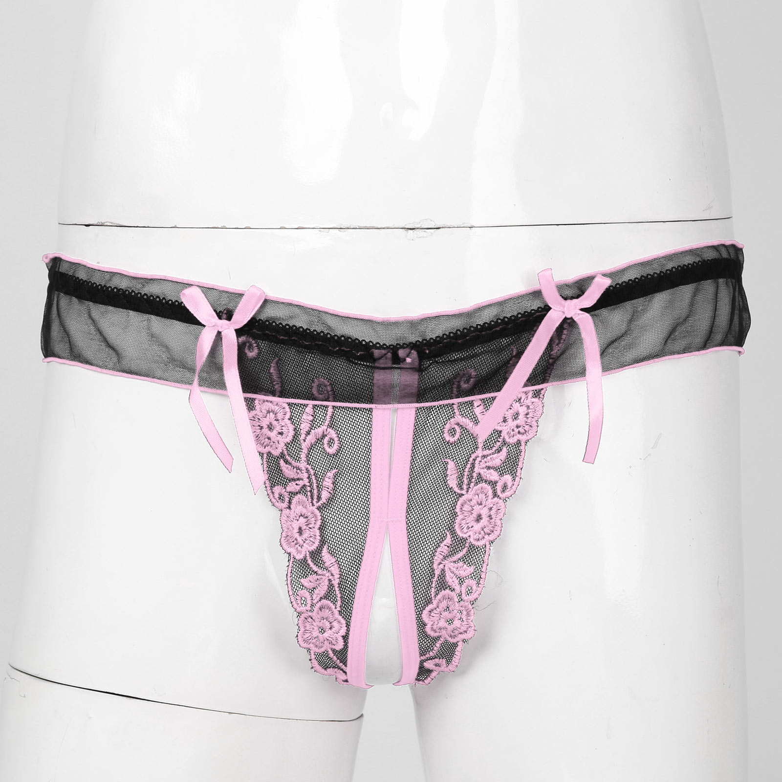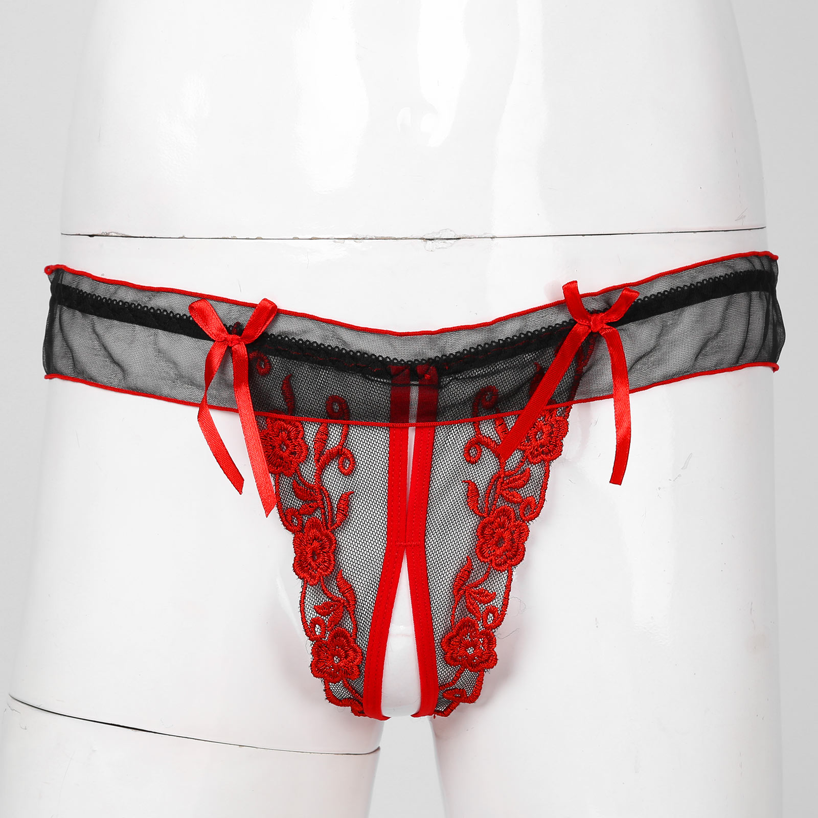 Мужские Трусы-стринги с цветочной вышивкой и кружевной отделкой