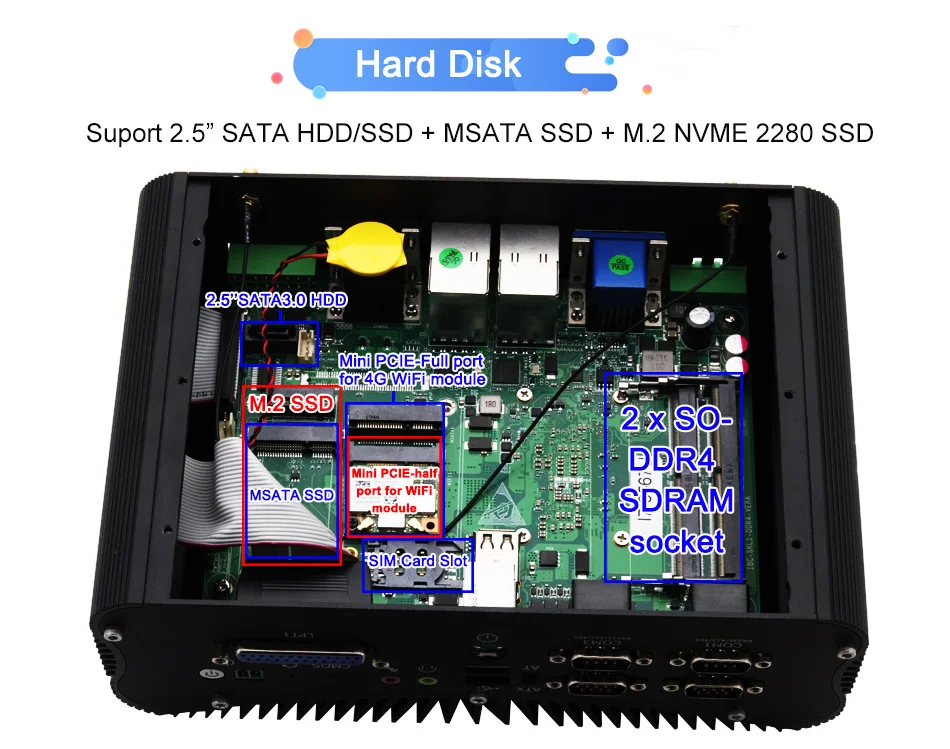 -3xStorage:1 * MSATA SSD + 1 * M.2 NVME SSD + 1*2,5 'SATA установка вместе;