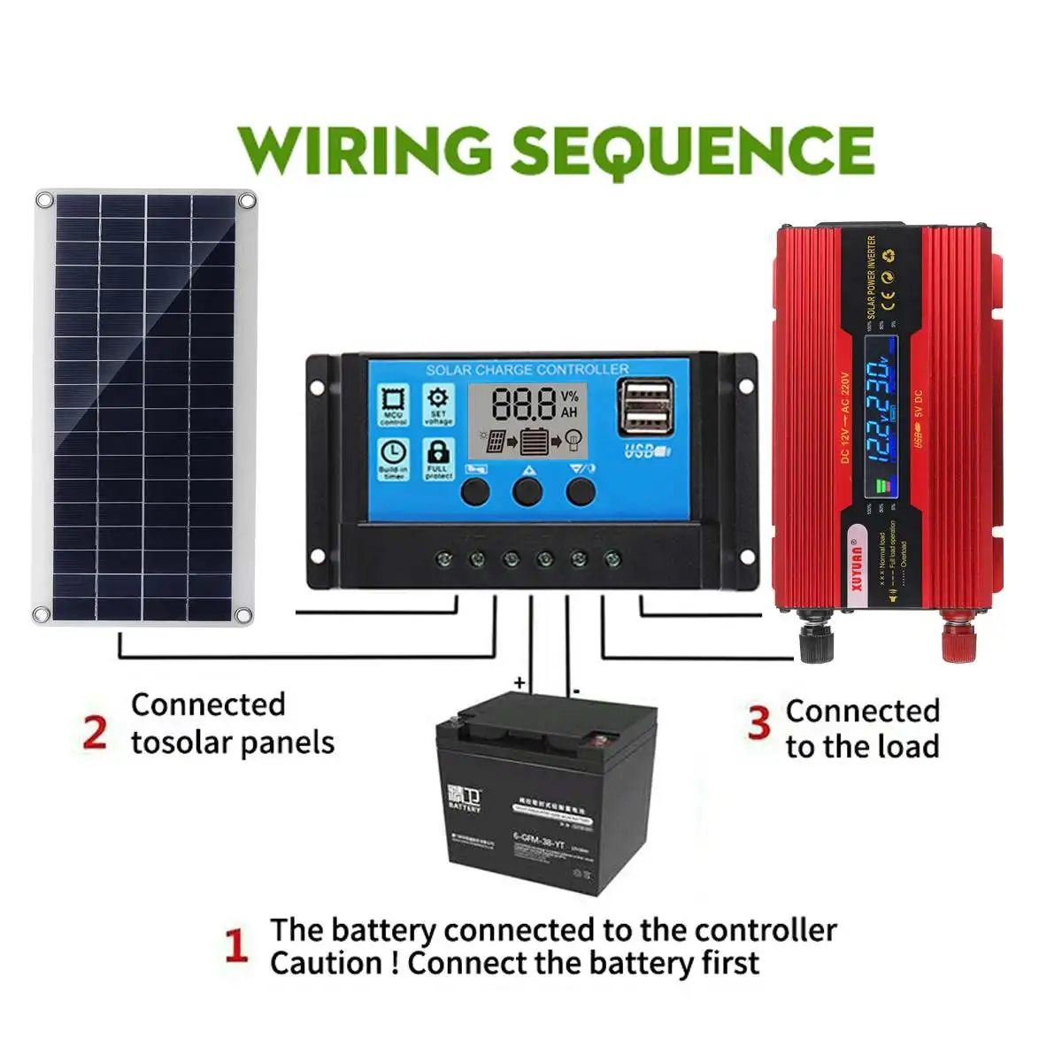1. Убедитесь, что ваш аккумулятор имеет достаточное напряжение для контроллера, чтобы распознать тип батареи перед первой установкой.