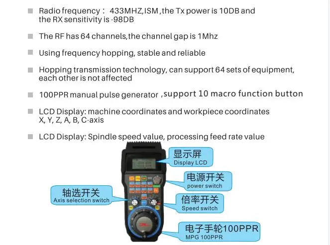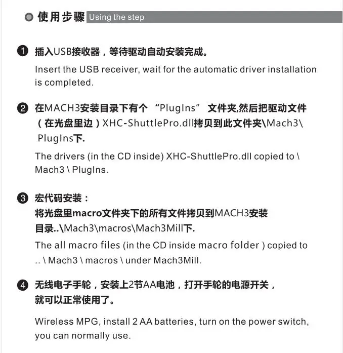 1 * беспроводной Маховик 1 * Беспроводной usb-приемник 1 * CNC Mach3 USB карта управления движением 1 * USB кабель 1 * руководство на английском языке