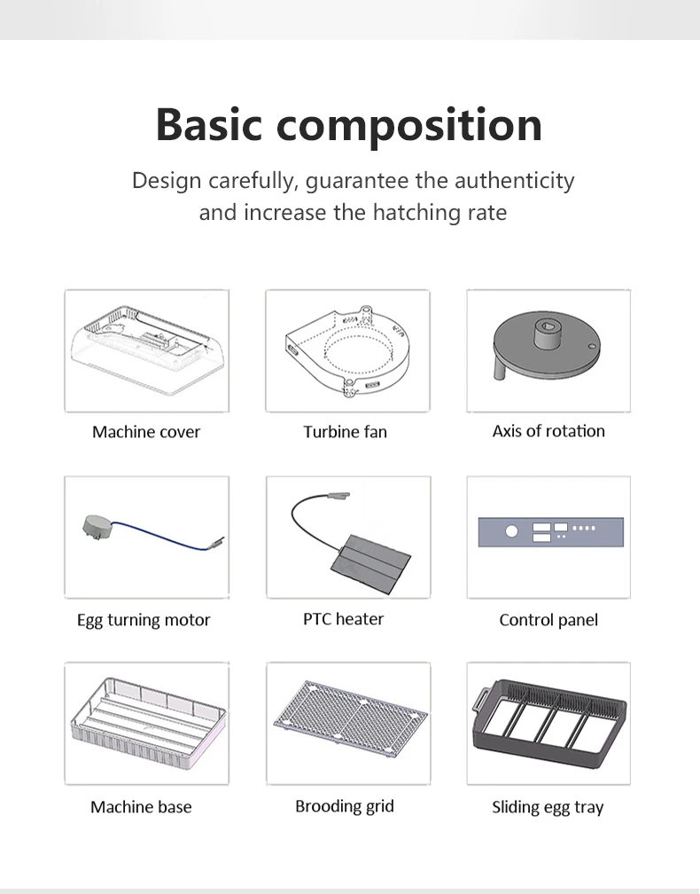 1. Три функции: Отображение температуры, инкубационные дни, время газирования. Когда клиенты используют его, они могут регулярно наблюдать за вращением яиц и выяснять Время инкубации и инкубации, что удобно для клиентов.
