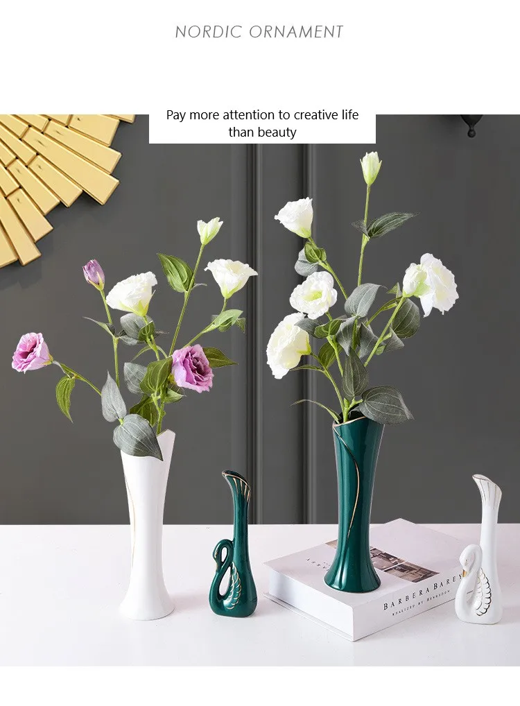Скандинавская Роскошная керамическая Золотая ваза в форме лебедя украшение для гостиной настольный цветок сухое цветочное украшение для дома