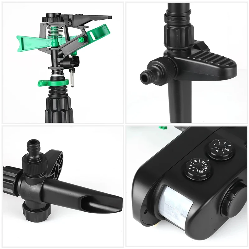 * При вторжении животных в дальность обнаружения PIR, дворник может распылить воду от вращающегося спринклера и выпустить сильный светильник, чтобы отвести их. Держите свой сад, сад, питомник и пруд вдали от неожиданных животных.