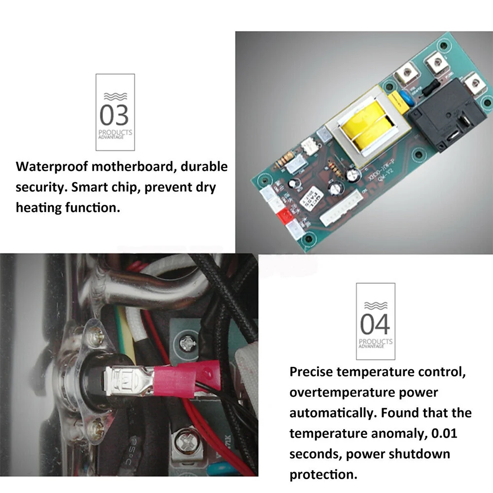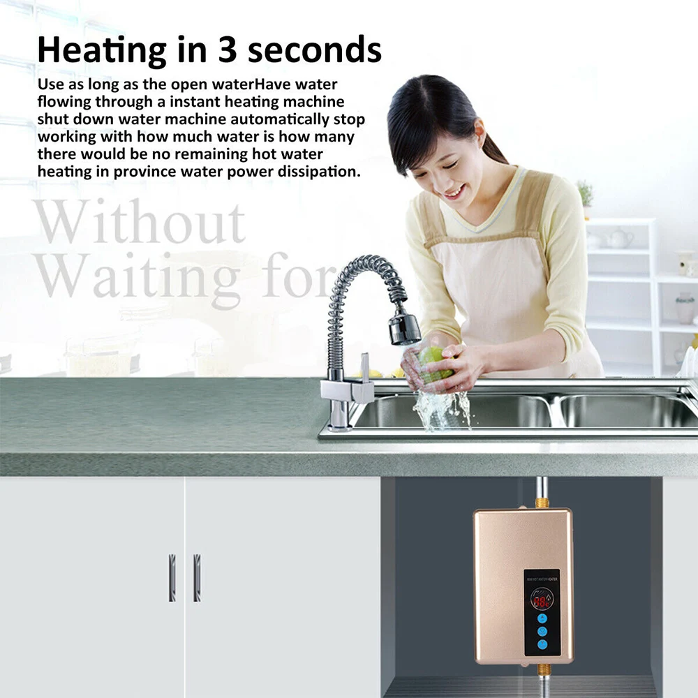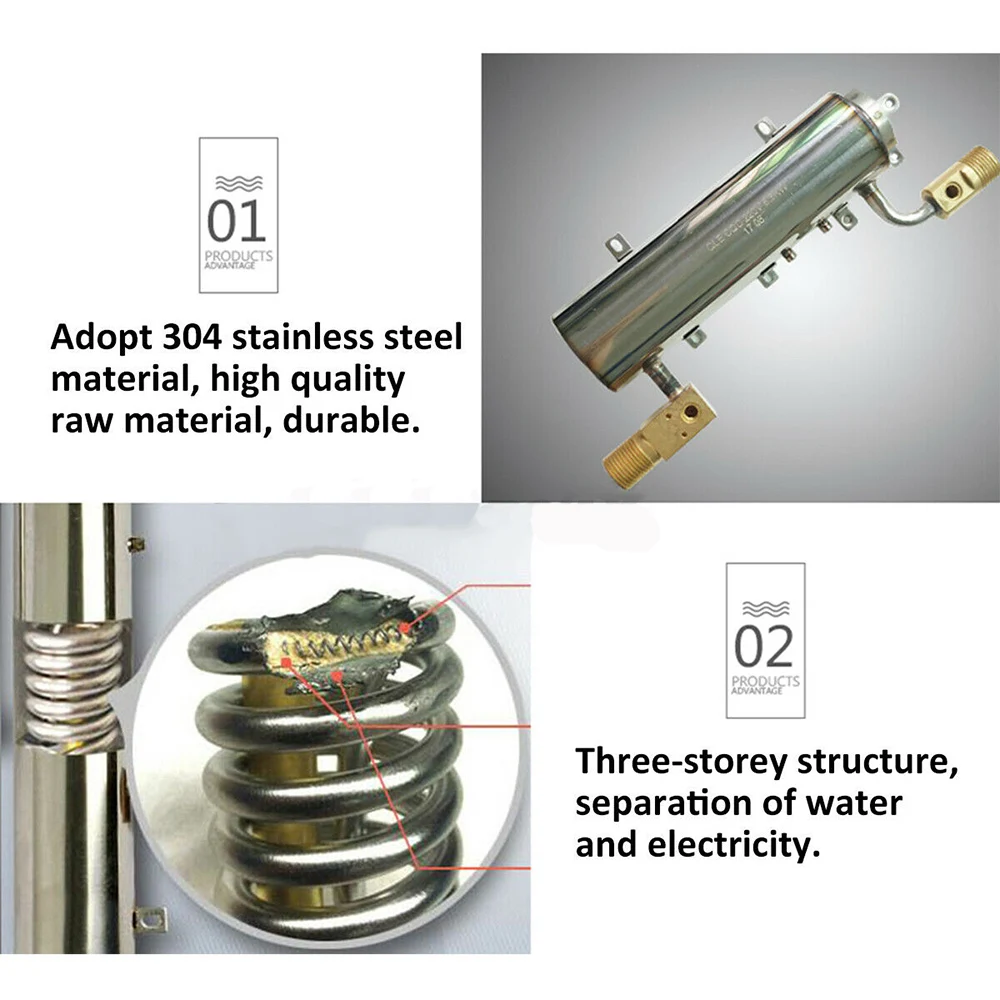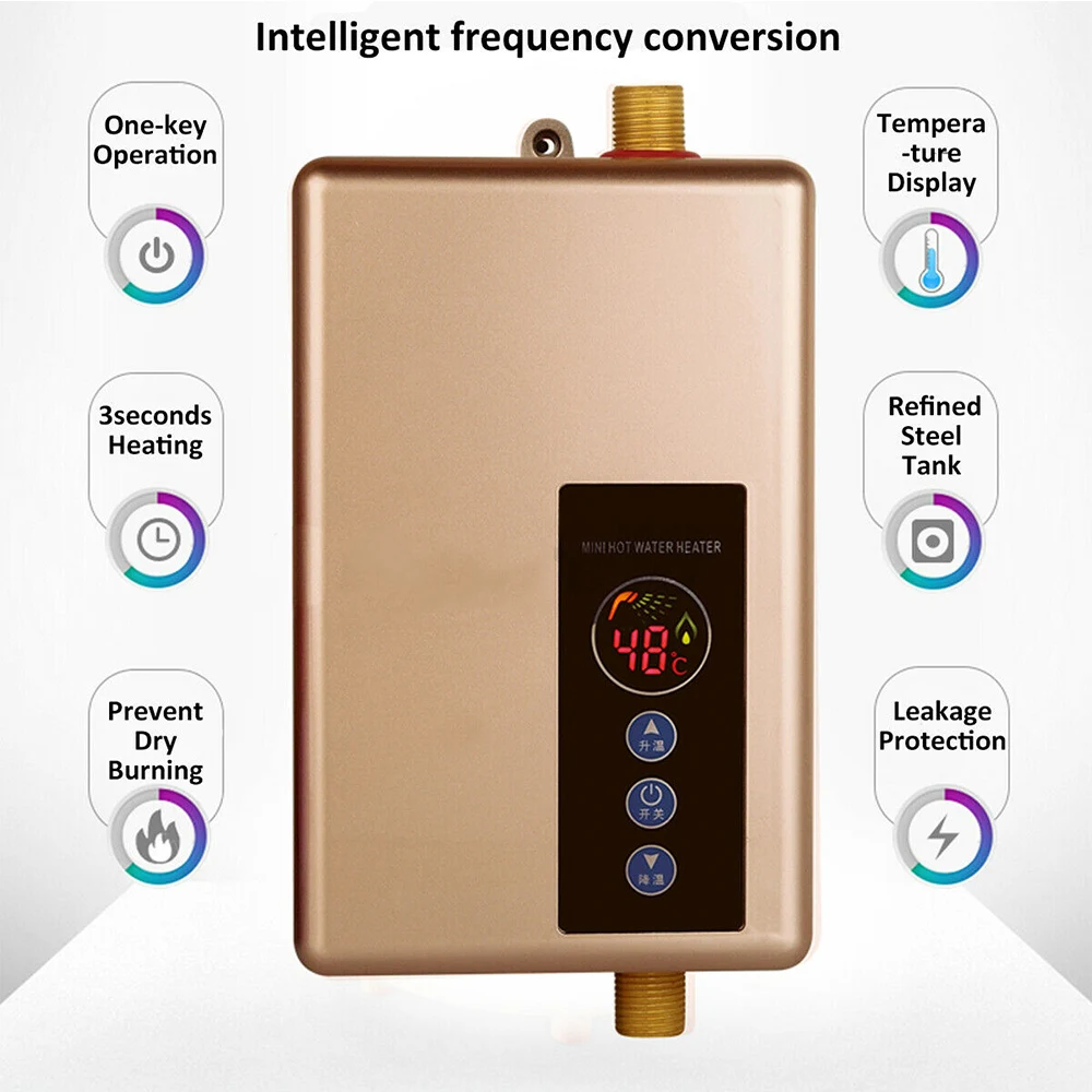-Мгновенное включение и мгновенное горячее без ожидания предварительного нагрева Пока включен поток воды, вода течет через машину для мгновенного нагрева и машина потока воды отключена. До тех пор, пока работа останавливается автоматически, вода будет максимально нагрета, и не останется потери горячей воды и экономии электроэнергии. -Прочный Водонагреватель изготовлен из 304 резервуара из нержавеющей стали, с гарантированным качеством и долговечностью. -Трехслойная структура Трехслойная структура, разделение воды и электричества. Внешний слой-нержавеющая сталь 304, полезный для пищевых продуктов, магнезиевый порошок средней теплопроводности, антивозрастной, устойчивый к коррозии, внутренний слой электронагревательной проволоки. -Водонепроницаемая материнская плата, прочная и безопасная Умный чип с функцией защиты от сухого ожога, тщательный уход. -Точный контроль температуры, автоматическое отключение при превышении температуры Обнаружена ненормальная температура, отключение через 0,01 секунды, защита от отключения. -Стандартный 4-точечный интерфейс На входе воды выполнена водопроводная труба из изысканной латуни и нержавеющей стали. -Умная сенсорная кнопка Температуру можно регулировать и переключать по вашему желанию, а управление клавишей простое и удобное для удовлетворения различных потребностей.