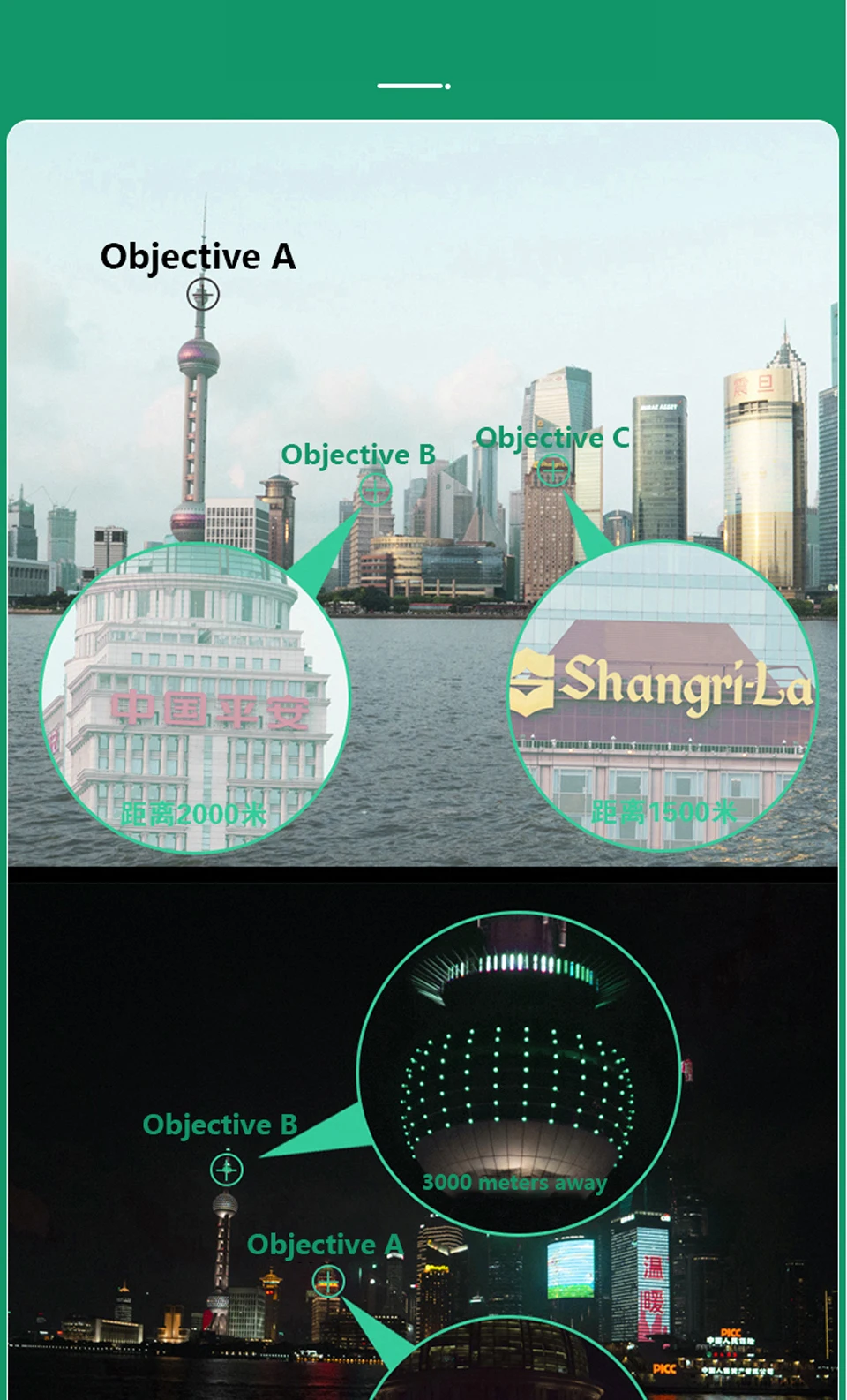1,50 мм, супер большой объектив, стабильный обзор (трудно встряхнуть)