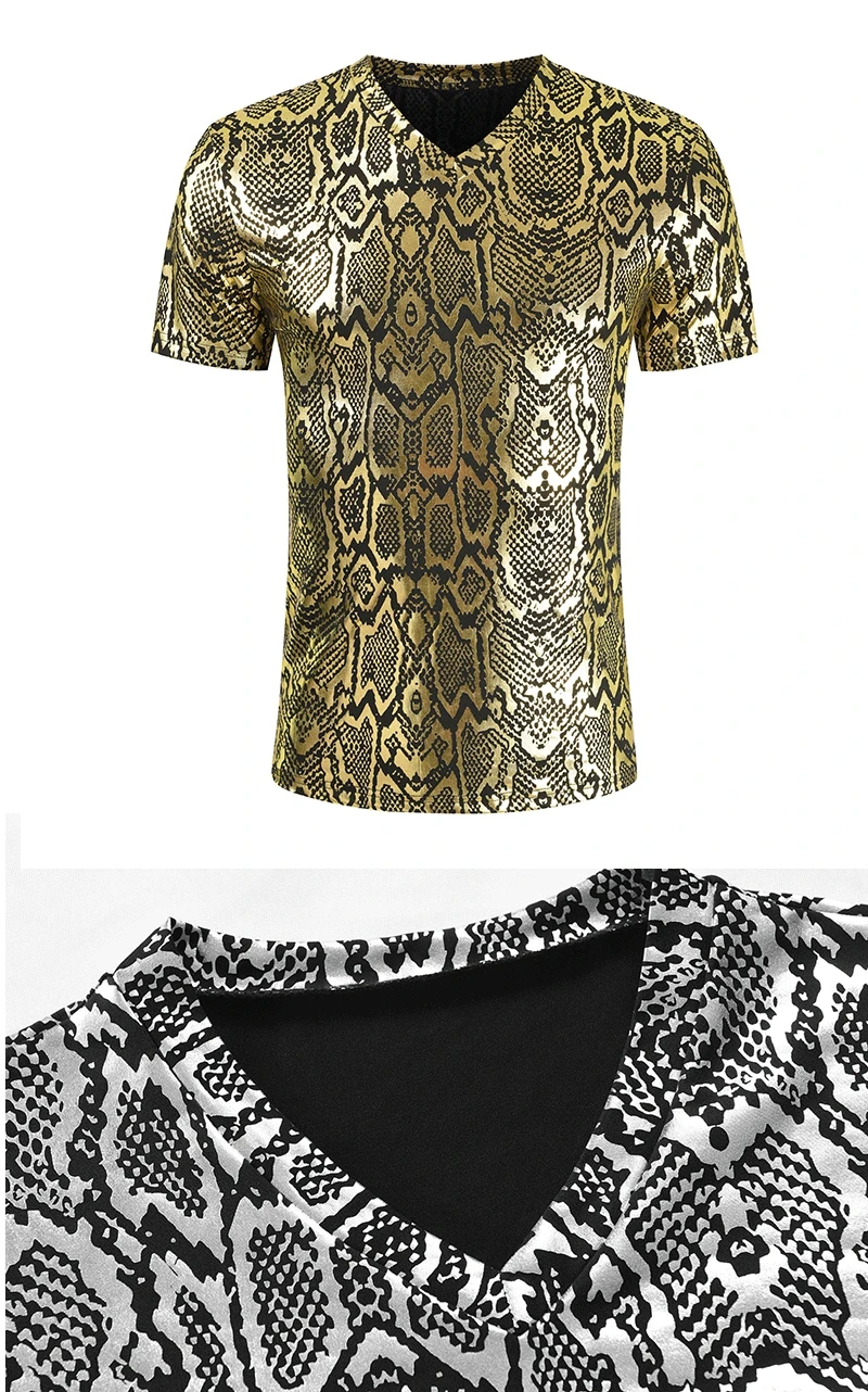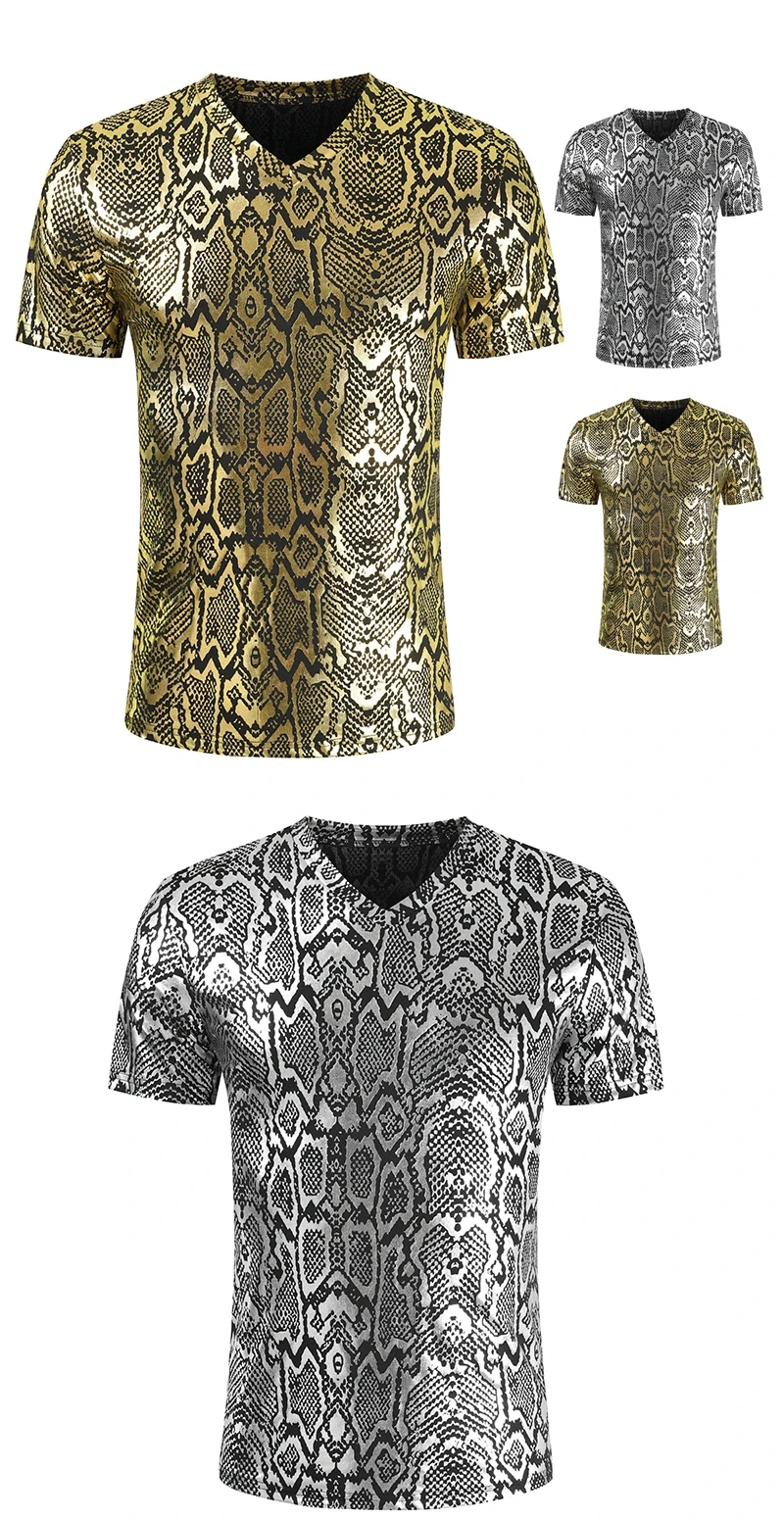 Золотые футболки с принтом змеиной кожи, мужские танцевальные сценические костюмы, серебристые блестящие вечерние приталенные дизайнерские необычные мужские модные 2021
