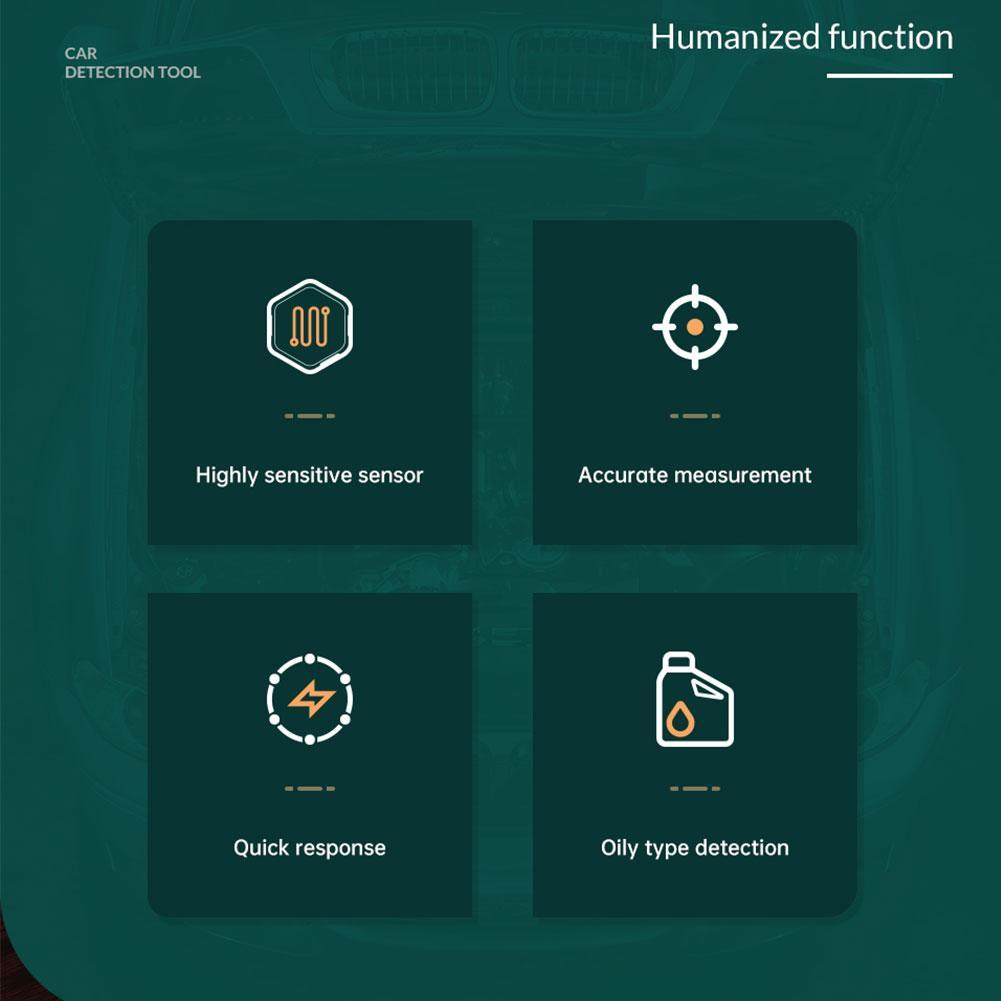 Ручка обнаружения тормозной жидкости основана на изменении проводимости для определения влажности тормозной жидкости. Он четко показывает степень влажности, содержащую светильник-излучающий диод, высокое содержание влаги приведет к более низкой температуре кипения, влияет на эффективность торможения. Красный цвет означает, что Тормозная жидкость нуждается в немедленном замене, зеленый цвет представляет хорошее состояние, желтый цвет означает, что состояние приемлемо, но вскоре заменяется. 1, зеленый светодиодный индикатор = содержание воды в тормозной жидкости H2O <1.5%, Тормозная жидкость квалифицирована 2, желтый светодиодный индикатор = содержание тормозной жидкости H2O = 1.5%-3%, может продолжать использовать, тест снова через шесть месяцев 3, Красный светодиодный индикатор = содержание воды в тормозной жидкости H2O> 3%, не может продолжать использовать тормозную жидкость должен быть заменен красный светодиодный: изменение тормозной жидкости 4, светодиодный мигающий красный: Замена батареи 5, светодиодный желтый: низкое содержание влаги, проверка снова в течение шести месяцев 6, светодиодный зеленый: линии тормозной жидкости/элемент Ряд