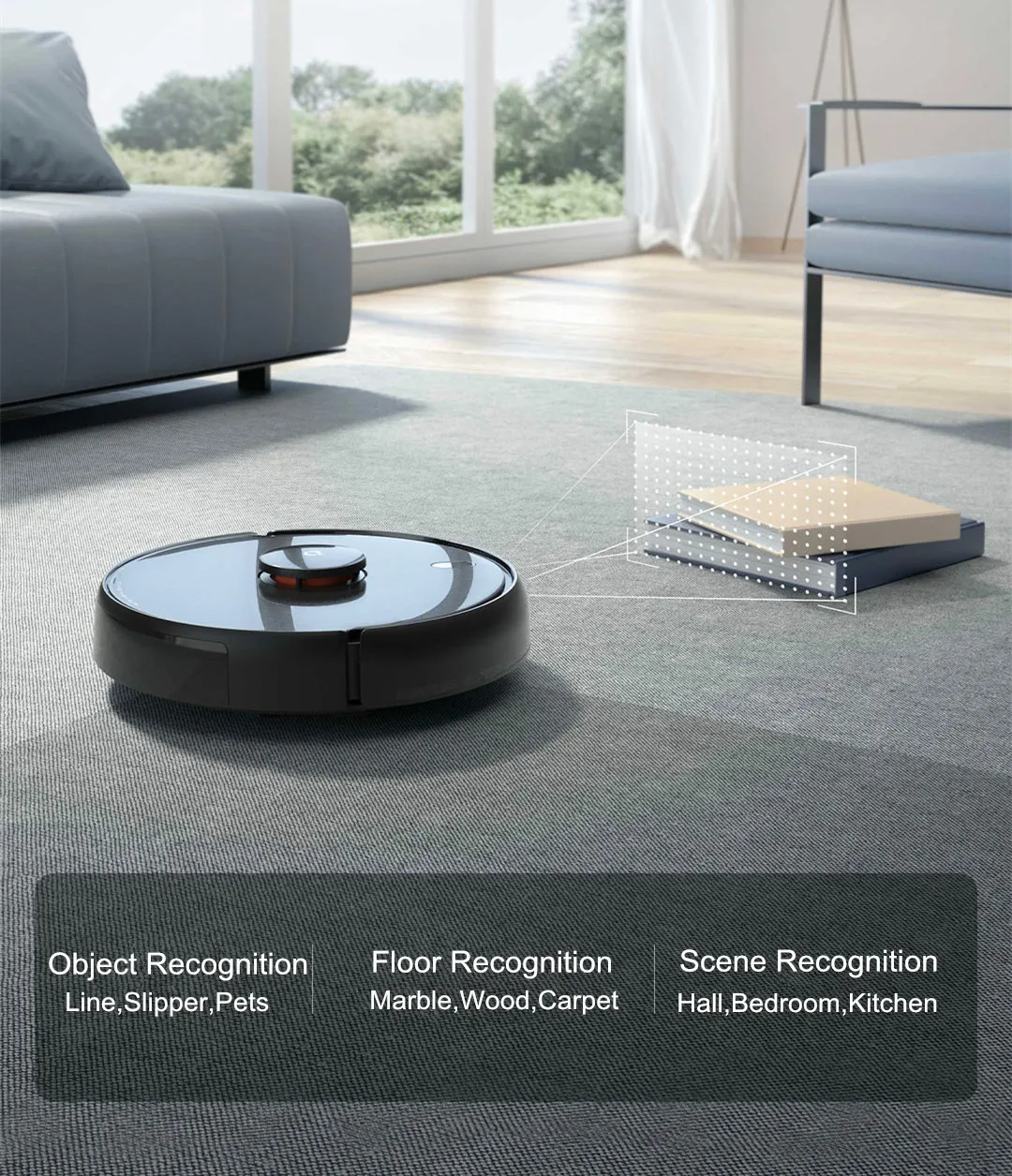 Учитесь независимо-чем больше он развернется, тем умнее он станет восприятием различных сложных сцен в доме в реальном времени, опознаванием объектов, распознаванием сцены, наземным материалом и т. д. Вы можете настроить план очистки в соответствии с различными сценариями, и вы можете быть уверены в предварительной очистке, Он учится самостоятельно умело распознавать график очистки постепенно.