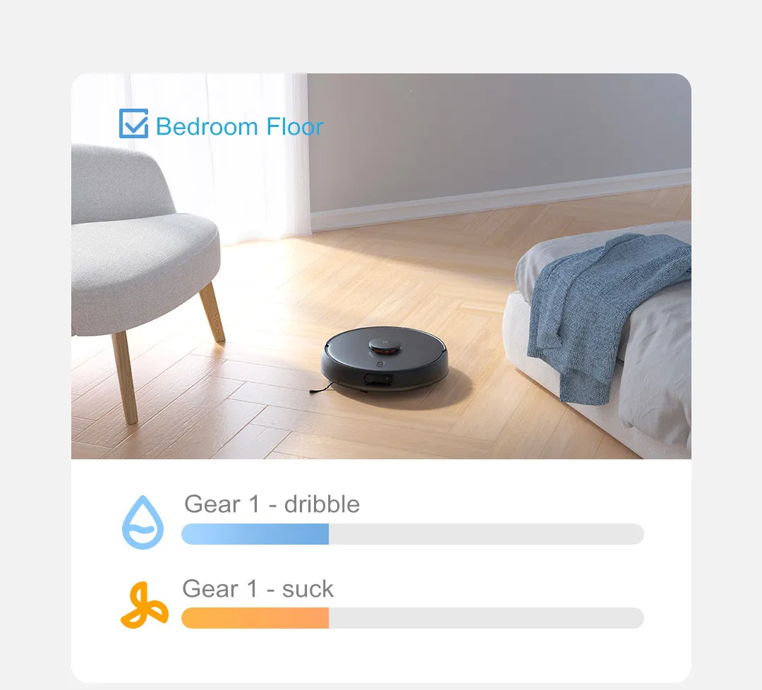 После подключения робота к приложению Mijia, вы можете дистанционно управлять роботом, даже если вы не дома, запланировать назначенную очистку, когда и где можно легко чистить дом.