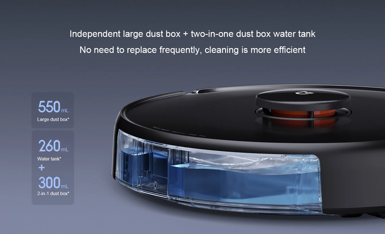 Встроенный аккумулятор емкостью 5200 мАч с длительным сроком службы легко удовлетворяет потребность в очистке большого дома 250 ㎡ за 1 раз после полной зарядки.