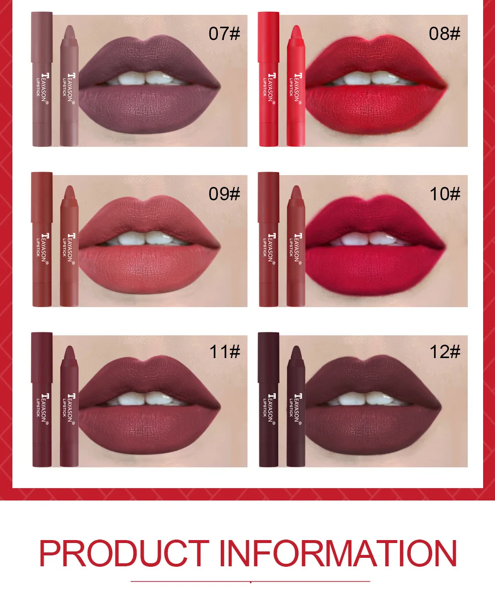 12 цветов, бархатная матовая помада-карандаш для губ, водостойкая, долговечная, сексуальная, Красная губная помада, чашка для макияжа, карандаш для губ, косметика