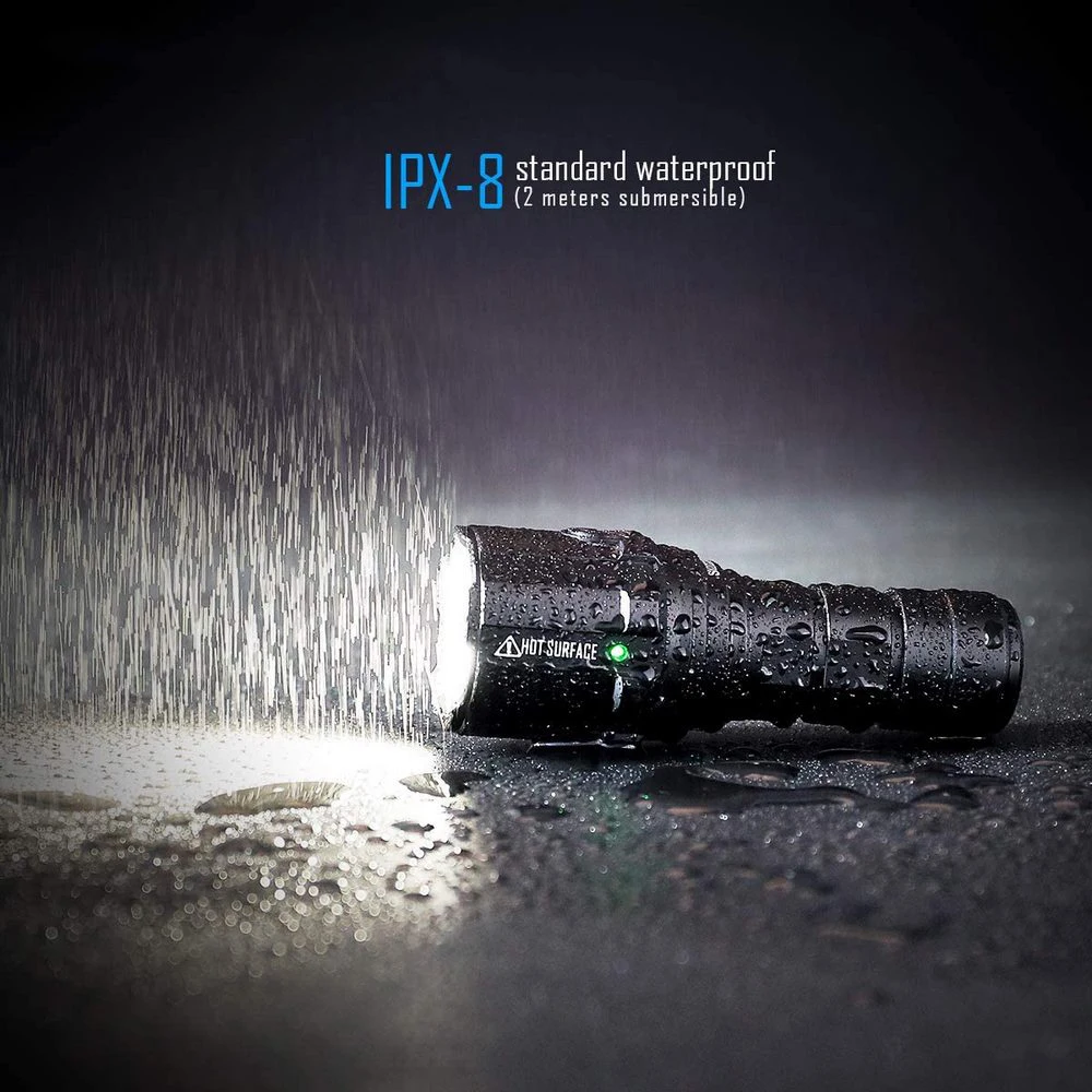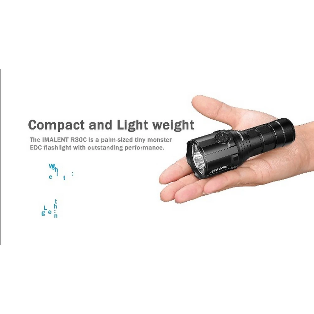 IMALENT R30C-это маленький фонарик для повседневного использования с маленькими монстрами пальмового размера с отличной производительностью. Он питается от литий-ионного аккумулятора 21700 с высоким энергопотреблением и магнитно заряжен. Он может излучать светильник до 9000 люменов, а расстояние луча-560 метров.Водонепроницаемое кольцо * 2
